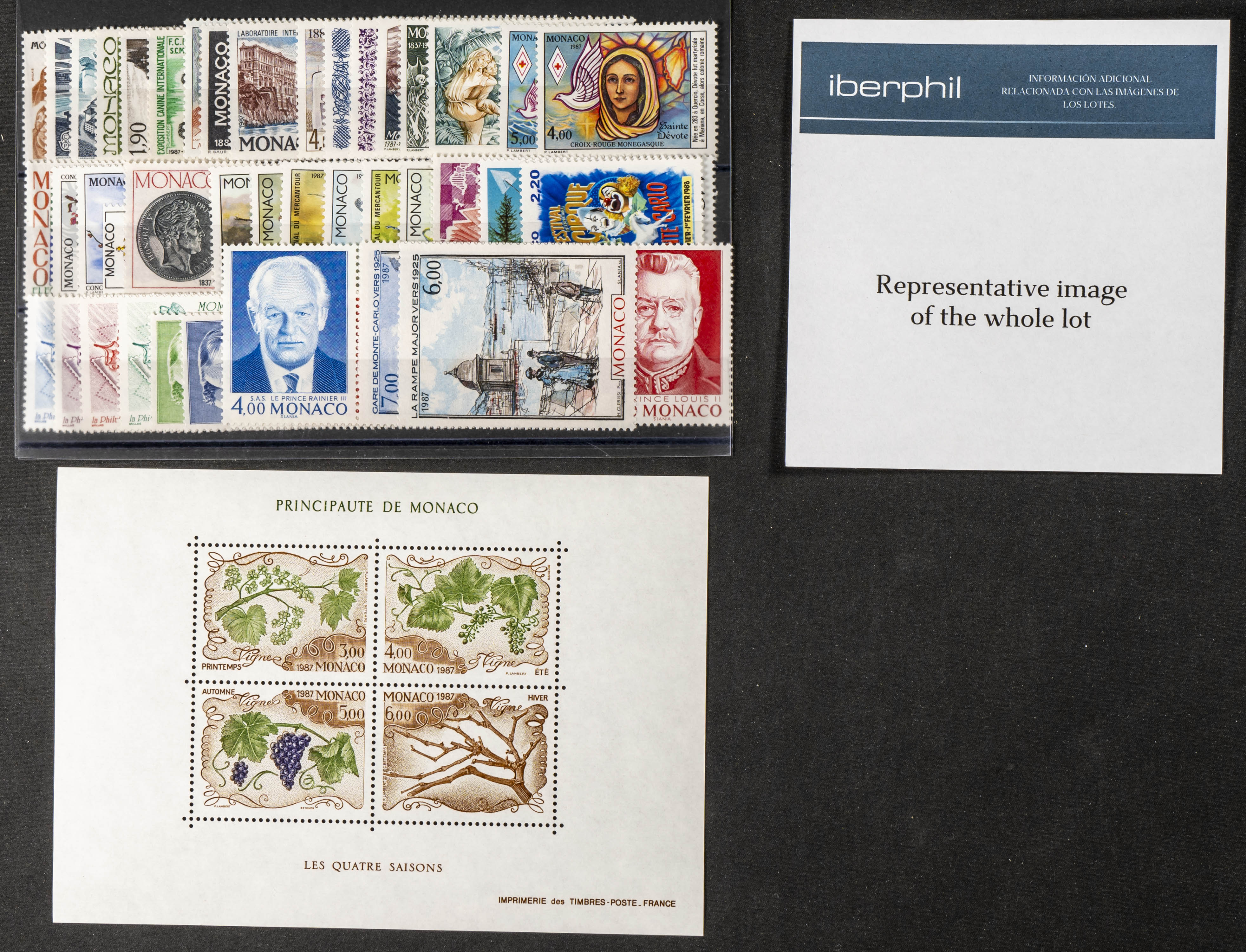 ★★1987. Conjunto de ocho años completos 1987 (sólo correo ordinario y sin sellos de la hoja bloque Yvert Nº: 1591/93) de Mónaco, en nuevo (montados en fichas). A EXAMINAR. Yvert 2023: 981 Euros