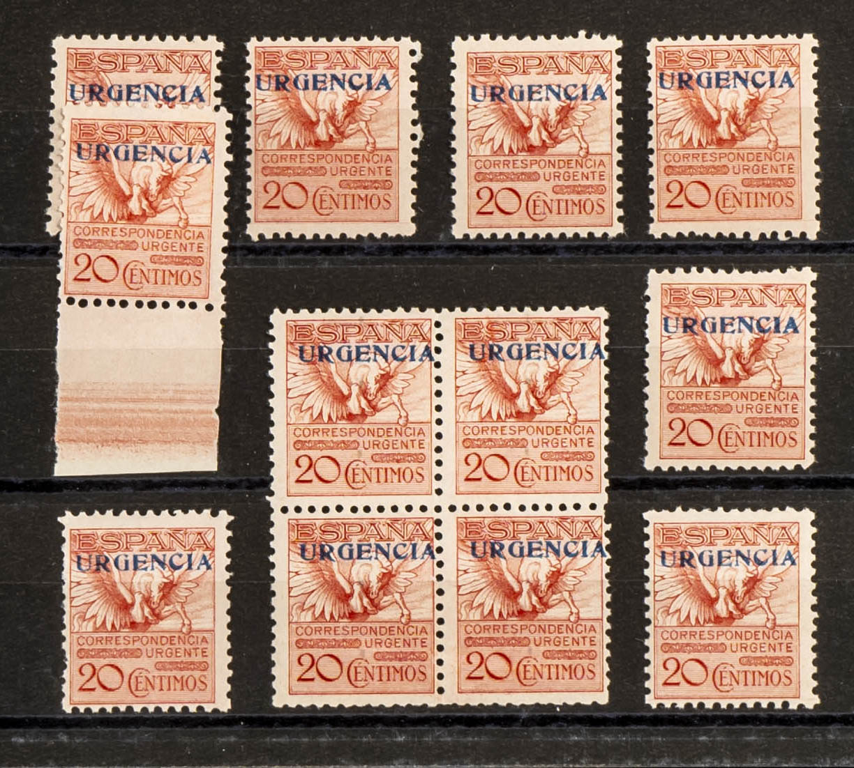 ★★ 489(9). 1930. Nueve sellos de 20 cts rosa. PEGASO (sobrecarga Urgencia). A EXAMINAR. Edifil 2025: 405 Euros