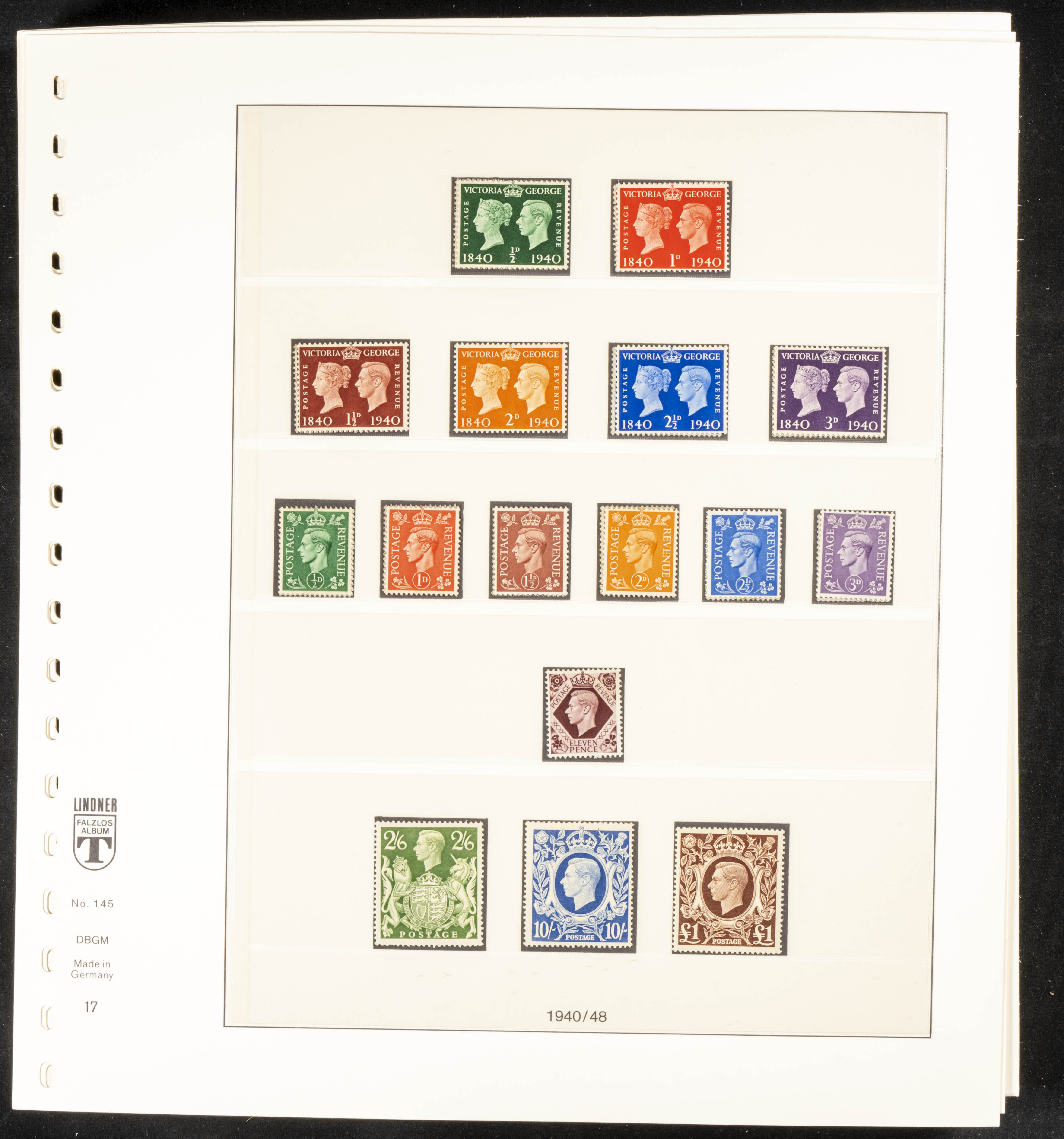 ★★/★(1940ca). Interesante y muy completa colección (falta algún sello de escaso valor) de Gran Bretaña entre 1940 y 2005, en nuevo y sin fijasellos (algún sello usado de años anteriores), incluye series completas de fósforo y la mayoría de carnets emitidos (normales y de Prestigio)(montado en álbumes Lindner). ALTISIMO VALOR DE CATALOGO. A EXAMINAR.