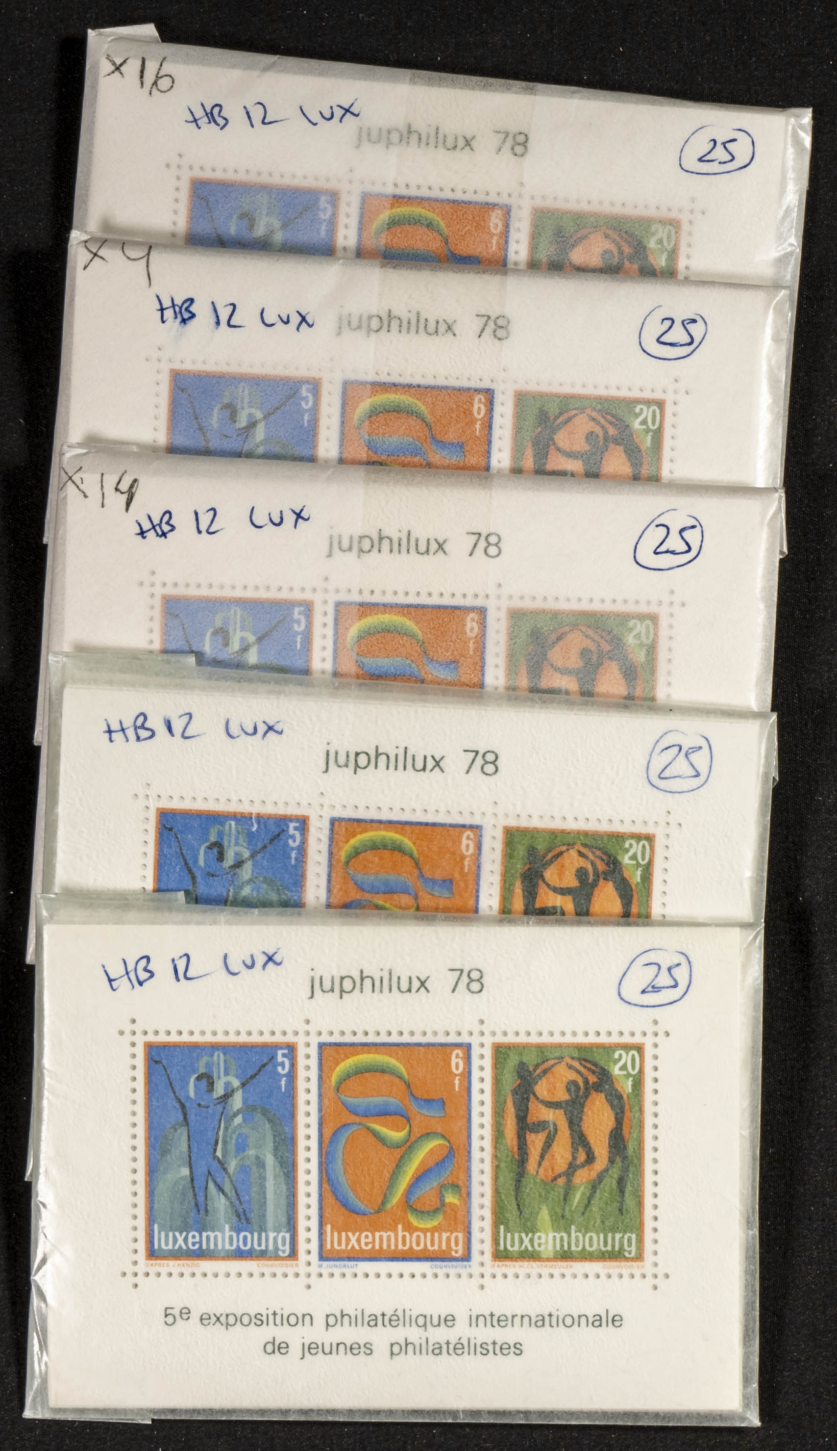 ★★Yvert HB12(125). 1978. Conjunto de ciento veinticinco hojas bloque JUPHILUX de Luxemburgo 1978, en nuevo. A EXAMINAR. Yvert 2023: 750 Euros