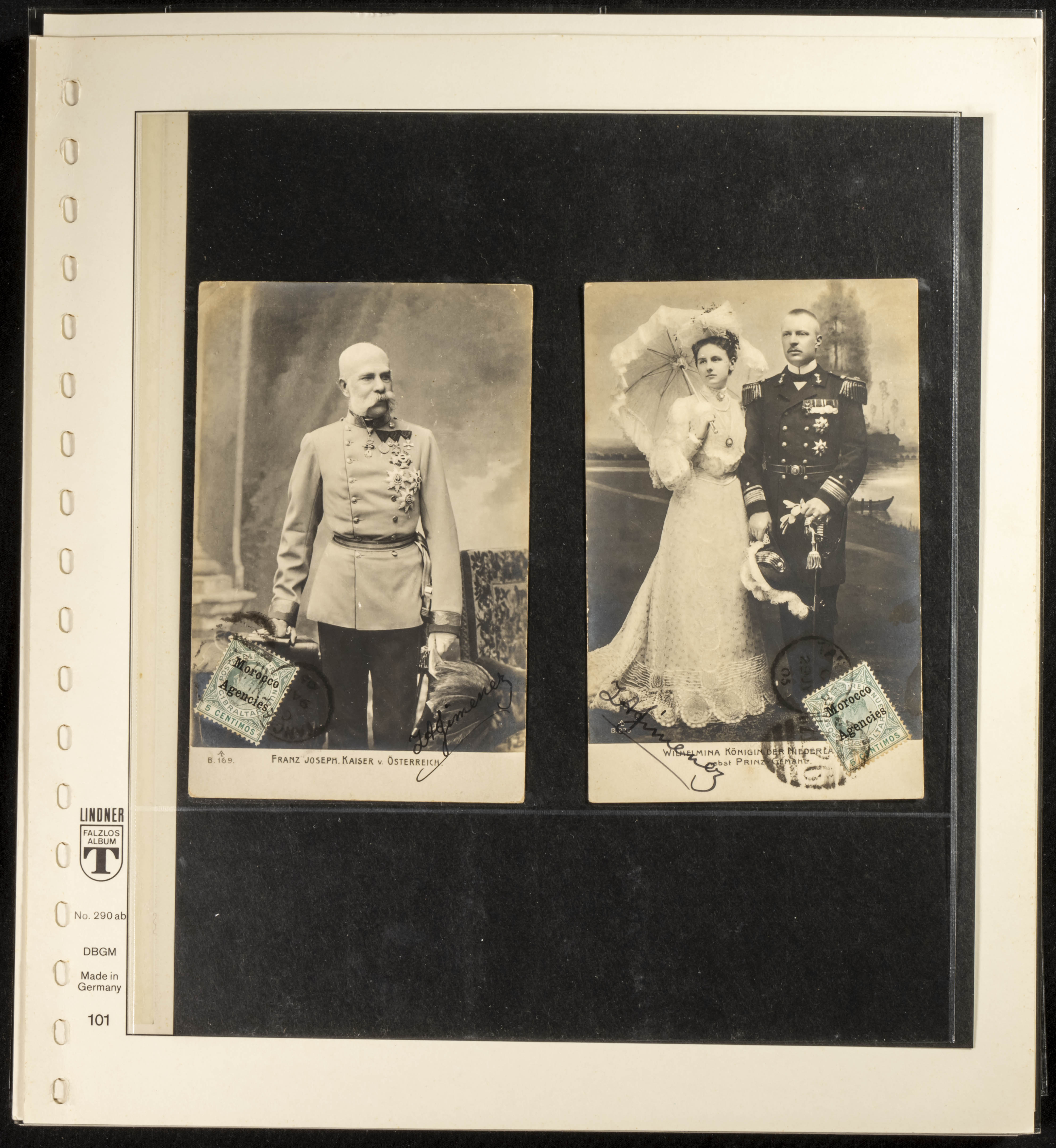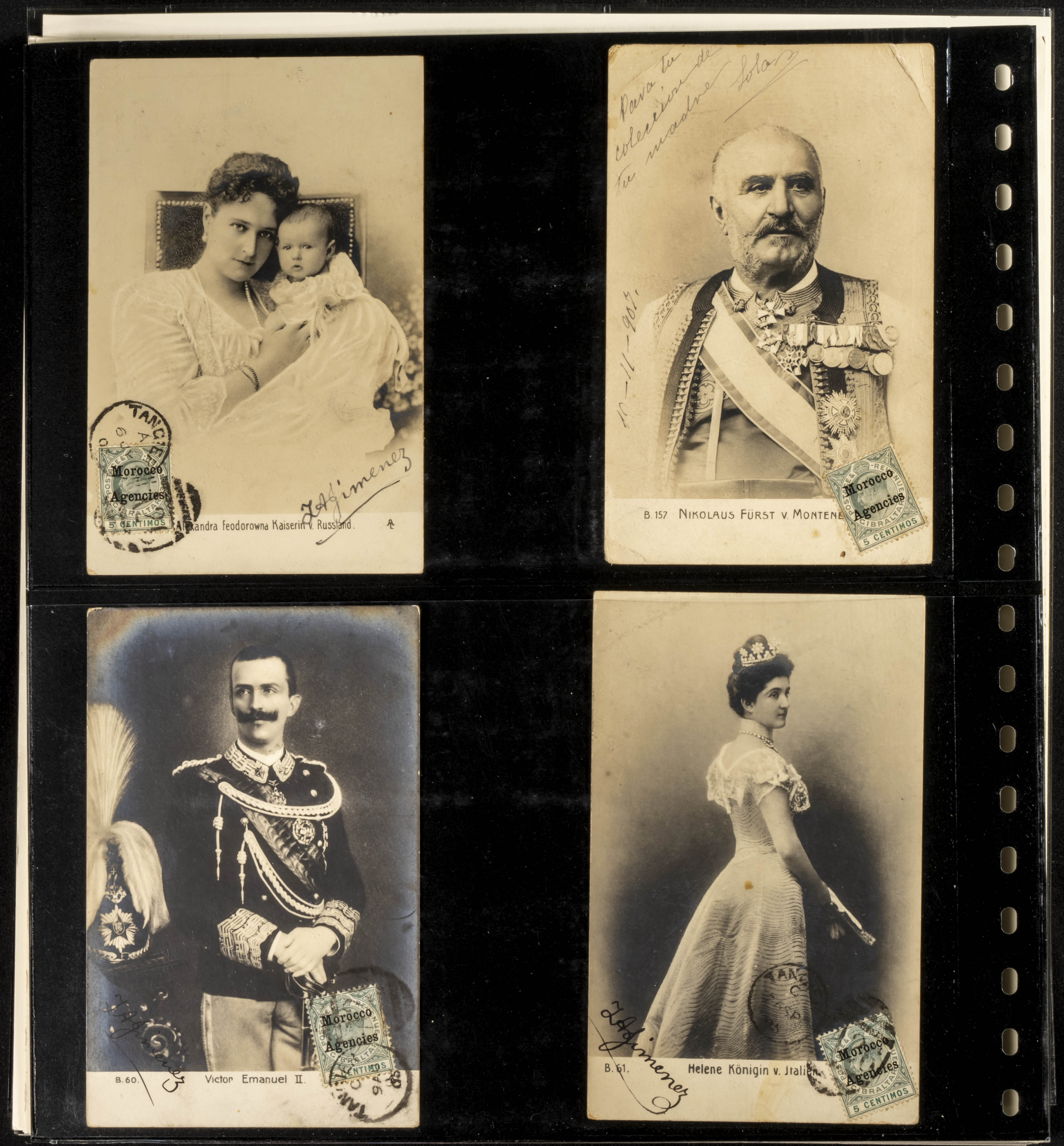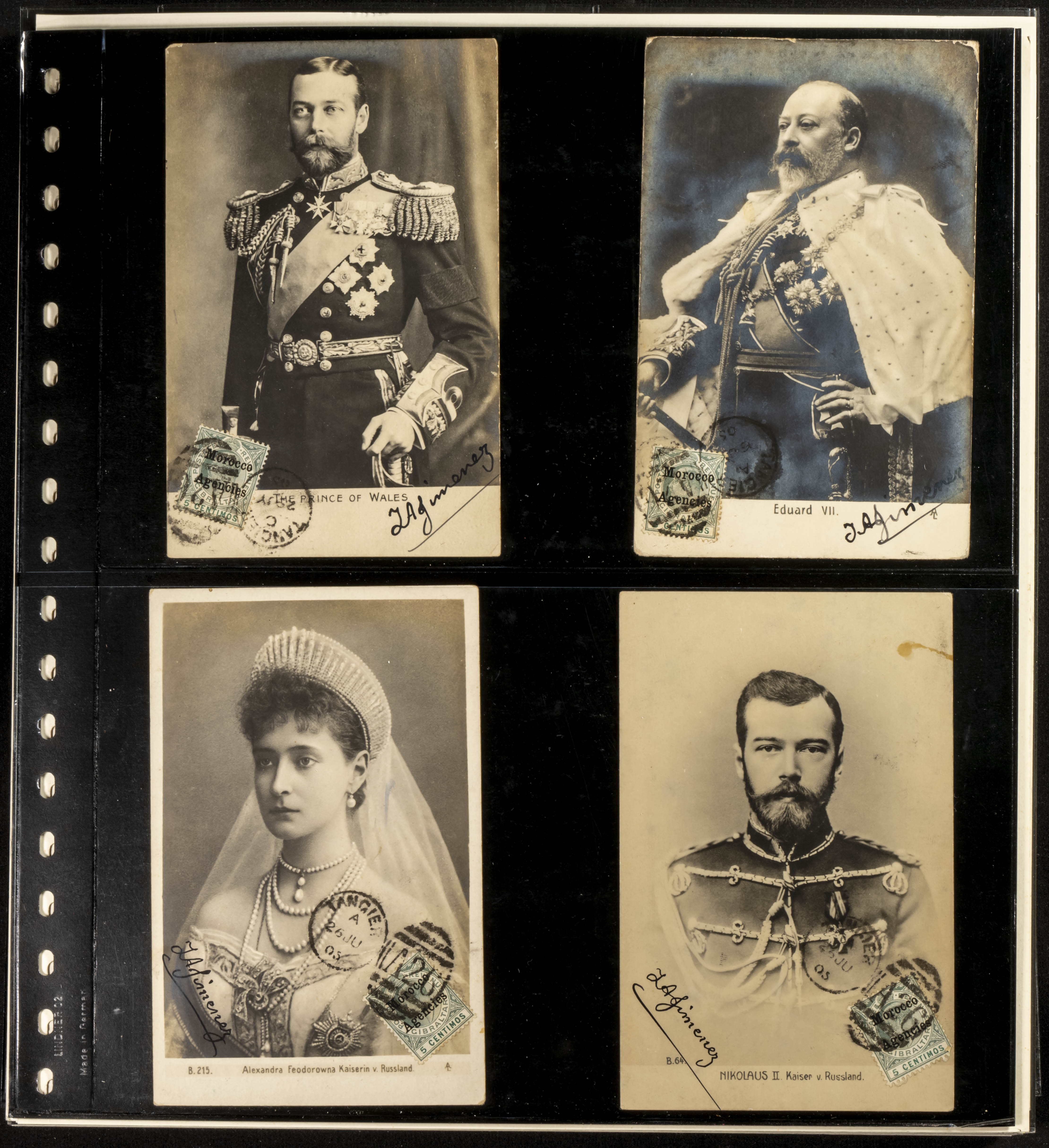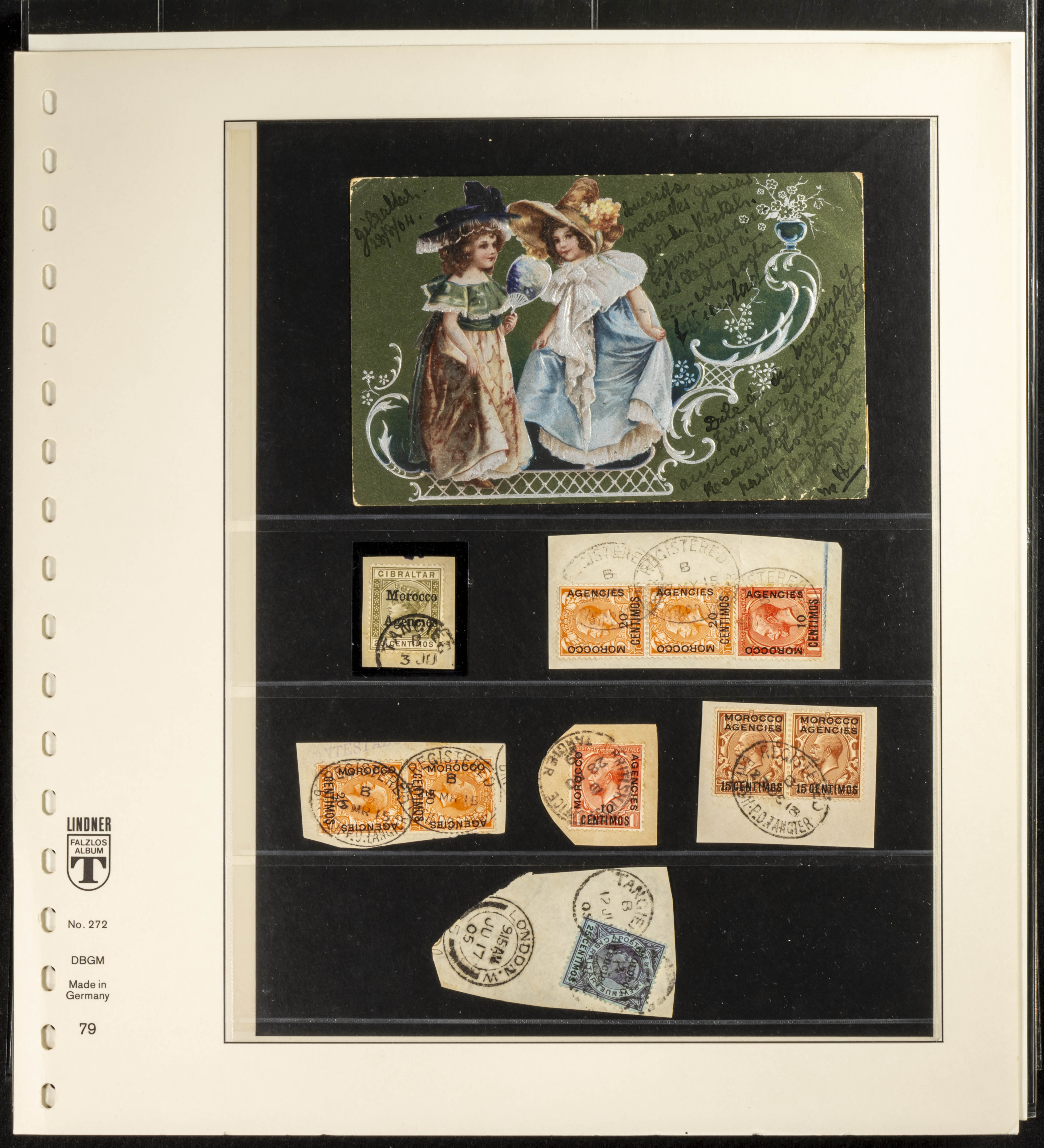 ★/(1898ca). Espectacular y prácticamente completa colección de Marruecos Británico entre 1898 y 1957, en nuevo y usado, incluyendo numerosos duplicados en usado y variedades, algunas muy raras, además de más de doscientas veinte cartas y tarjetas postales circuladas entre las que se encuentran cuatro transportadas por el Zeppelin, muchos fragmentos con sellos usados, también de Gibraltar utilizados en Marruecos. MAGNIFICA Y OFRECIDA INTACTA, SE TRATA DE UNA DE LAS COLECCIONES MAS COMPLETAS QUE IBERPHIL HA SUBASTADO DE ESTE PERIODO.