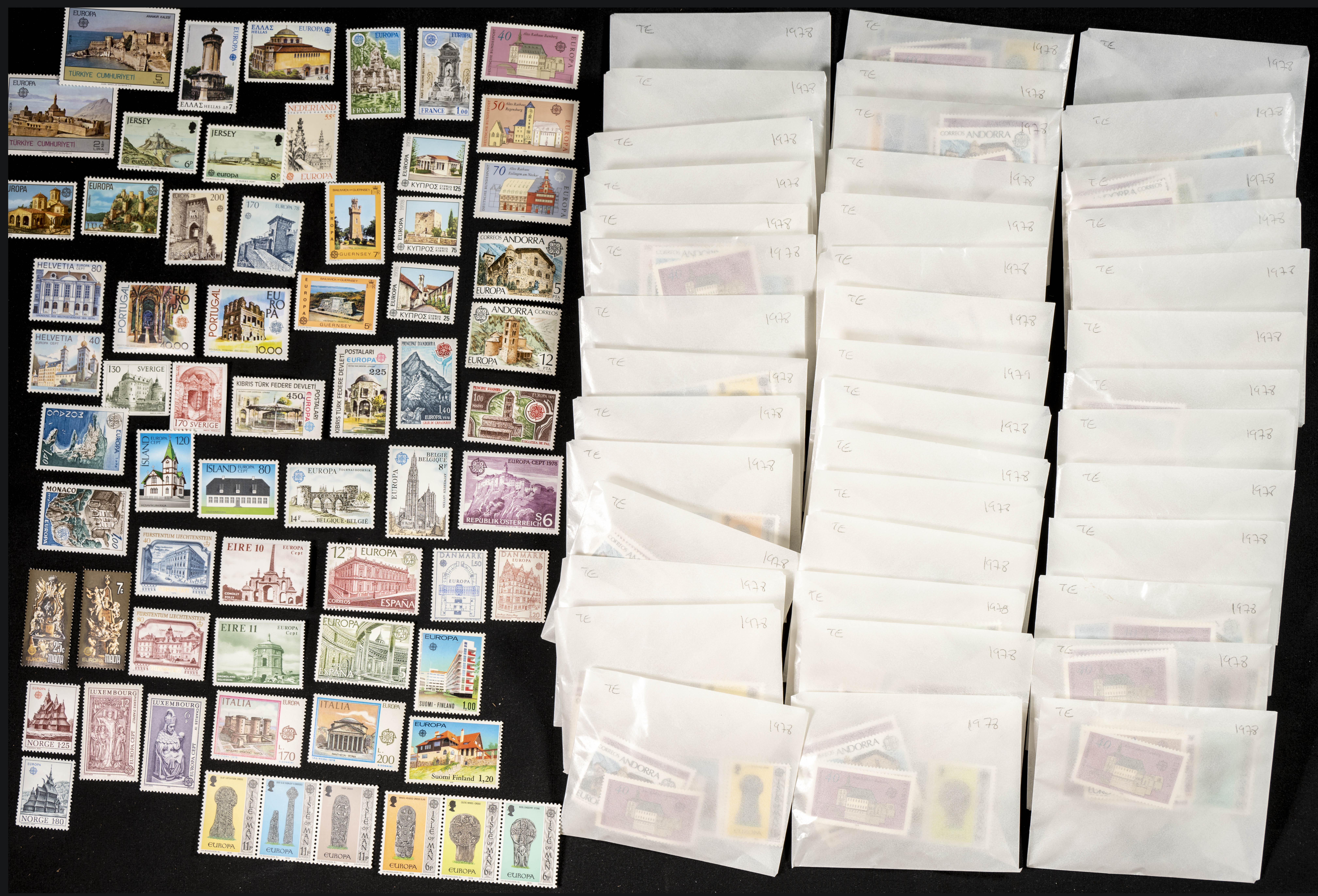 ★★1978. Conjunto de cuarenta y tres años completos del Tema Europa 1978 sin hojas bloque (sólo sellos) organizados en sobres de cristal, en nuevo. A EXAMINAR. Yvert 2016: 5.289 Euros