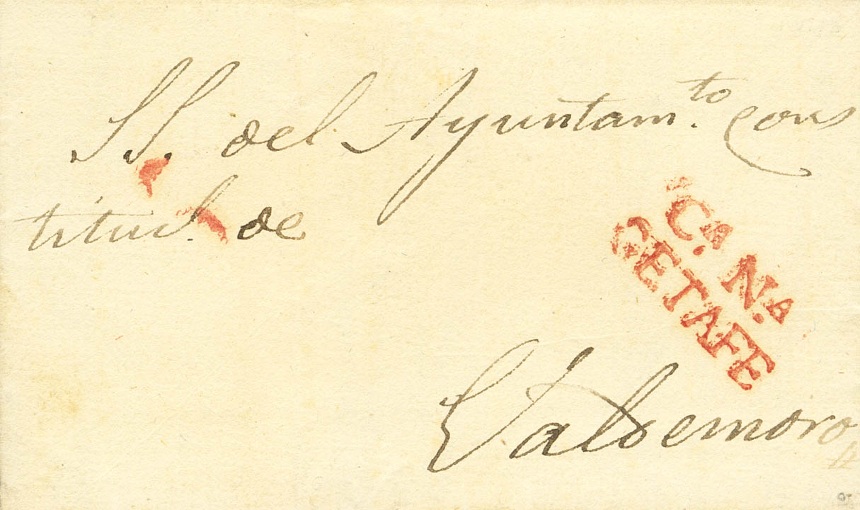 1843. GETAFE a VALDEMORO. Marca Cª Nª / GETAFE, en rojo (P.E.1) edición 2004. MAGNIFICA Y RARA.