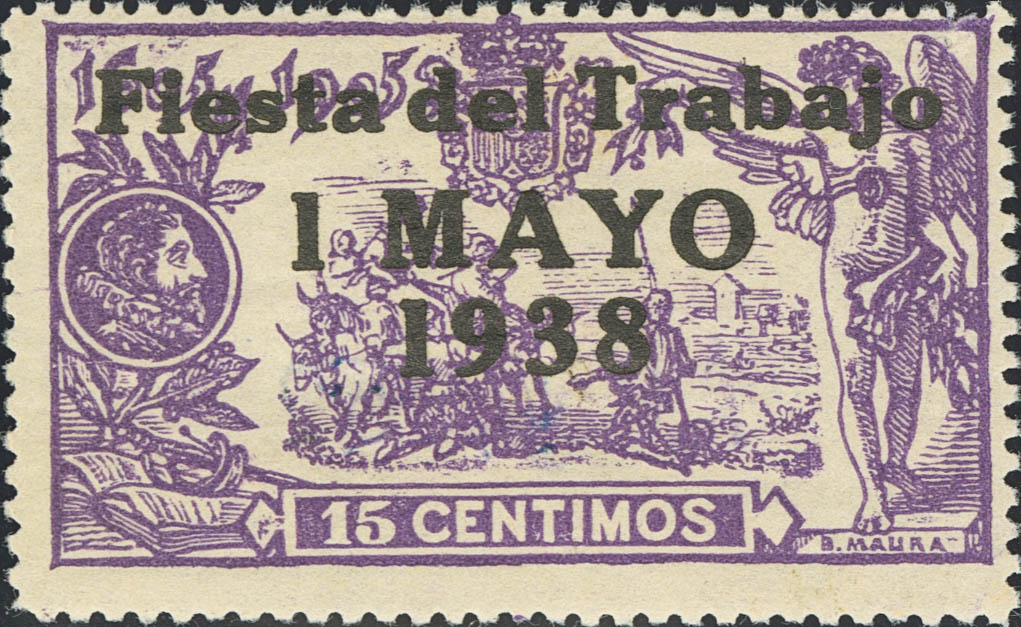 ★★ 762hp. 1936. 1 pts sobre 15 cts violeta. 1 PESETA OMITIDA. MAGNIFICO. Edifil 2020: +235 Euros