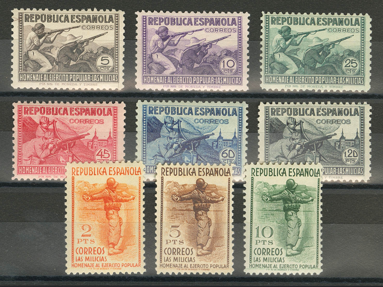★★ 792/00. 1938. Serie completa. Muy bien centrada. MAGNIFICA. Cert. CEM. Edifil 2025: 850 Euros