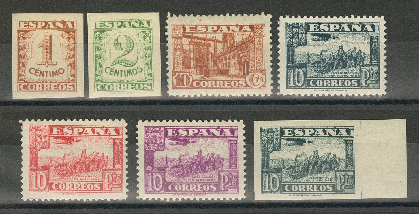 ★★/★ 802, 803, 805, 813(4). 1936. 1 cts, 2 cts (sin dentar), 10 cts, 10 pts, cuatro sellos (uno sin dentar). COLORES CAMBIADOS. MAGNIFICOS.