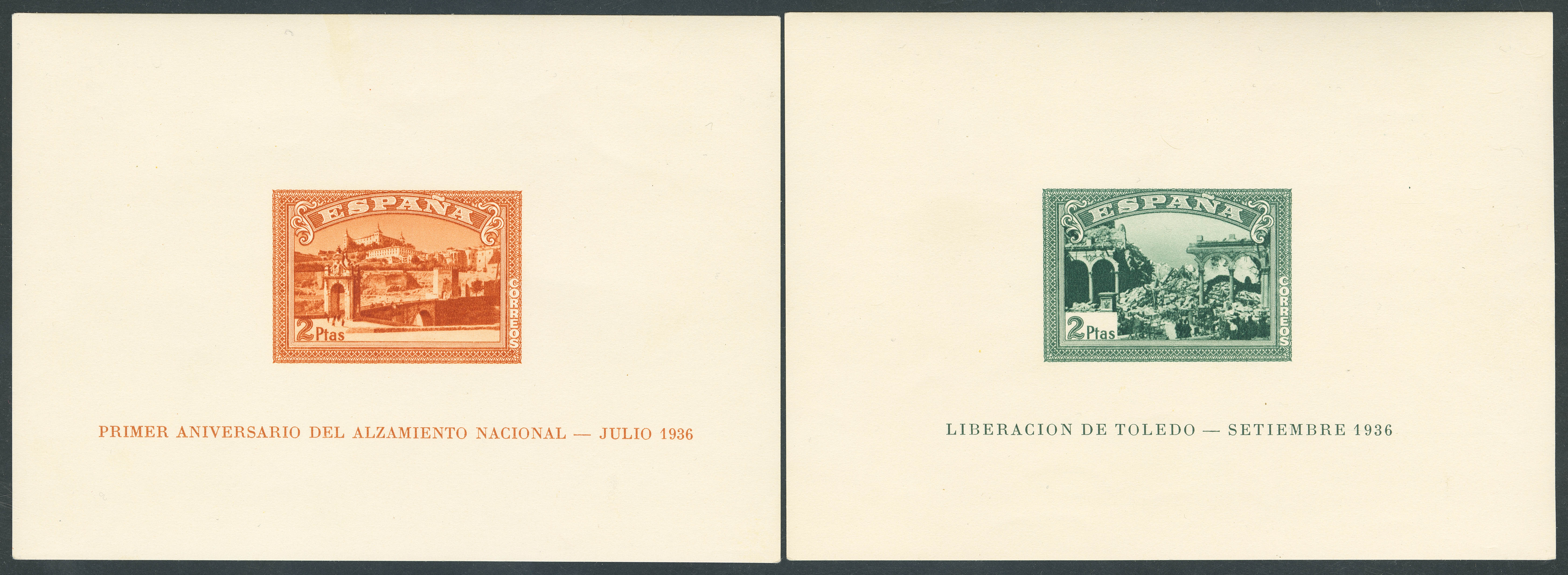 ★★ 838/39. 1937. Hojas bloque. SIN DENTAR. MAGNIFICAS. Cert. CEM. Edifil 2025: 1.250 Euros