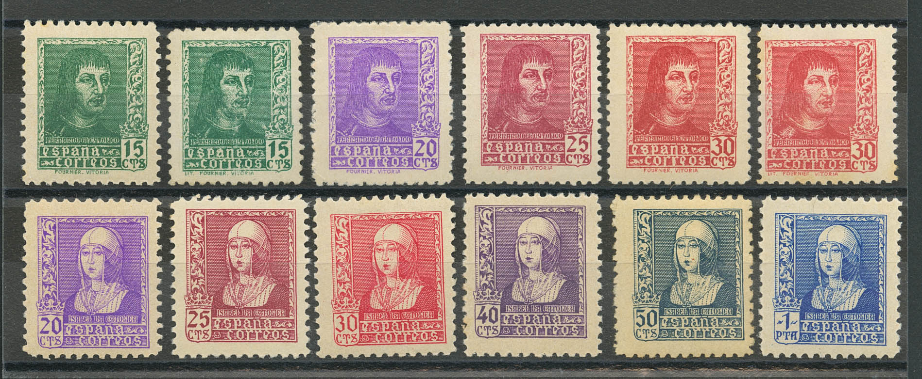 ★★ 841/44A, 855/60. 1938. Dos series completas (30 cts rojo Edifil 844A manchitas del tiempo). BONITAS. Edifil 2025: 230 Euros