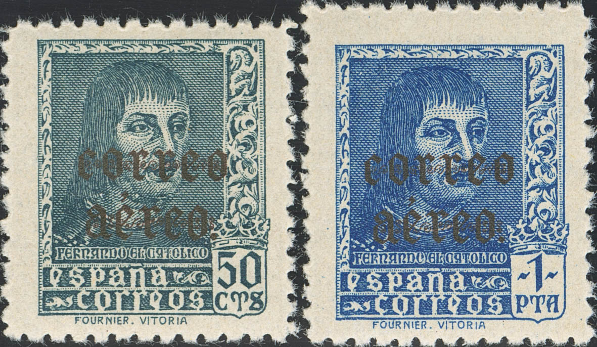 ★★ 845/46hcc. 1938. Serie completa. CAMBIO DE COLOR DE LA SOBRECARGA, en negro. MAGNIFICA. Edifil 2025: 490 Euros