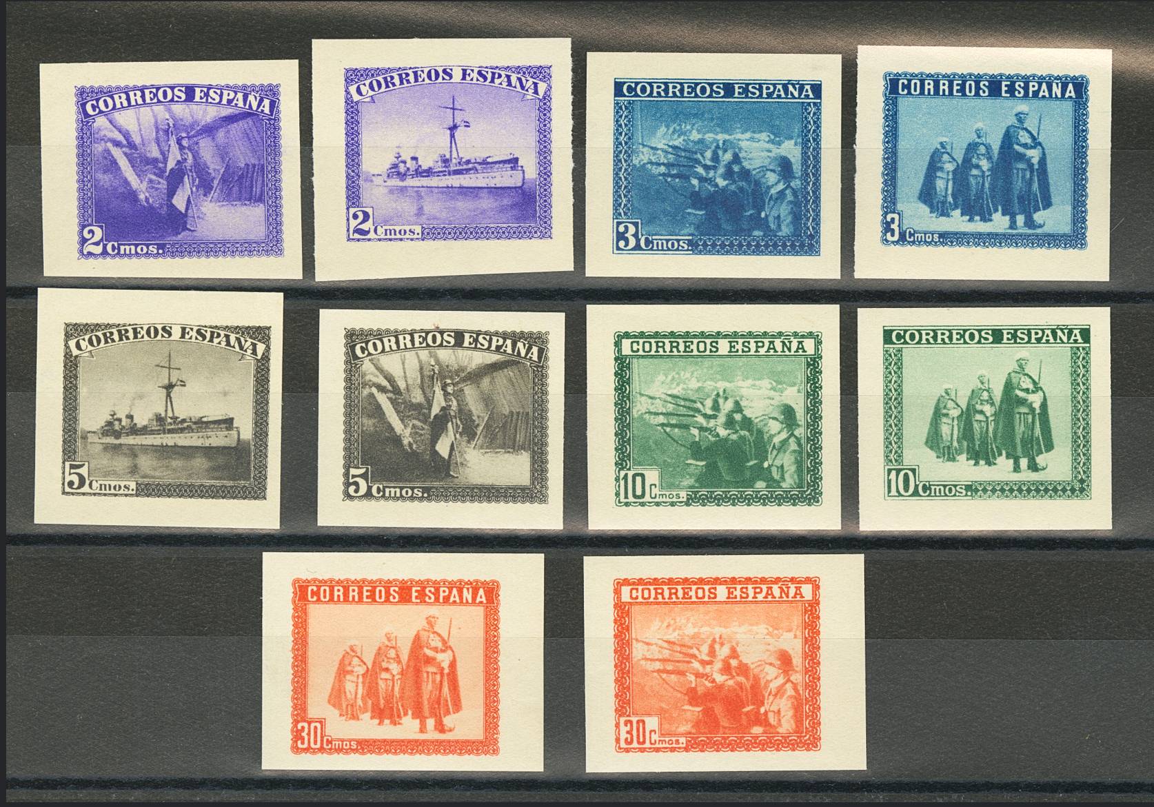★★ SH850. 1938. Serie completa, sellos procedentes de la hoja bloque. SIN DENTAR. MAGNIFICA. Edifil 2025: 100 Euros