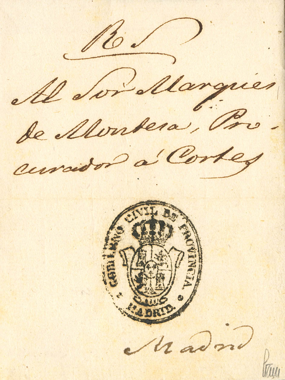 (1800ca). Correo Interior de MADRID. Marca de franquicia GOBIERNO CIVIL DE PROVINCIA / MADRID. MAGNIFICA Y RARA.