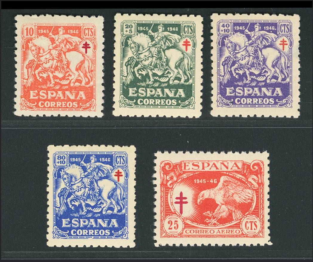 ★★/★ 993/97N. 1945. Serie completa (40 cts punto claro). NºA000000. MAGNIFICA. Edifil 2025: 72 Euros