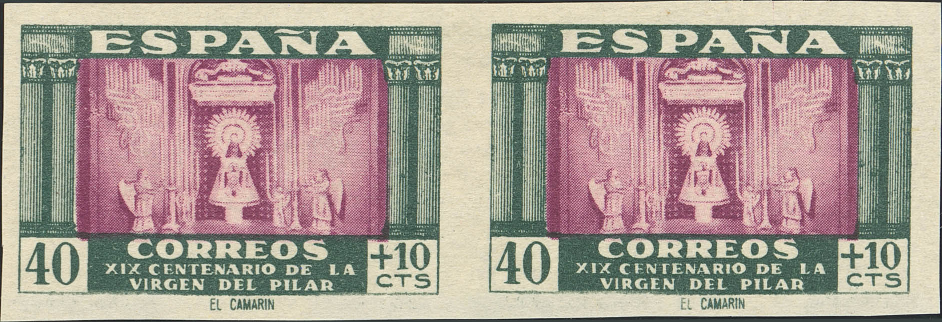 ★ 998s(2). 1946. 40 cts + 10 cts verde, pareja. SIN DENTAR. MAGNIFICA. Edifil 2025: 276 Euros
