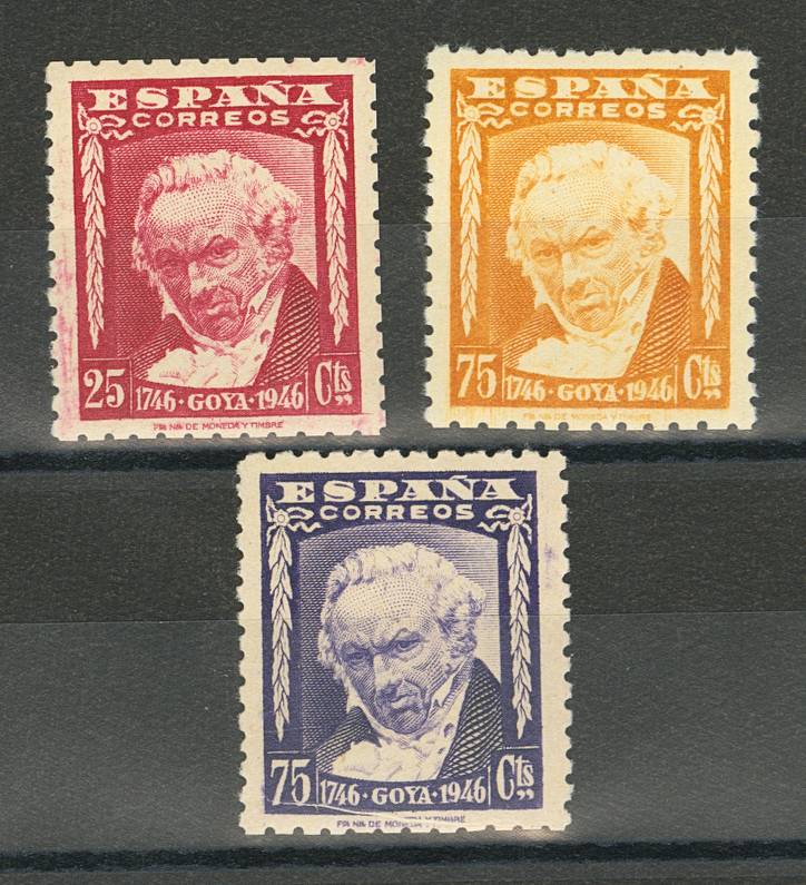★★ 1005/07cc. 1946. Serie completa (75 cts pliegue natural del papel). COLORES CAMBIADOS. MAGNIFICO. Edifil 2025: 540 Euros
