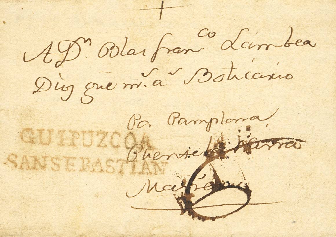 1810. SAN SEBASTIAN a MAÑERU (NAVARRA). Marca GUIPUZCOA / SAN SEBASTIAN, en rojo (P.E.20) edición 2004. MAGNIFICA Y RARA.