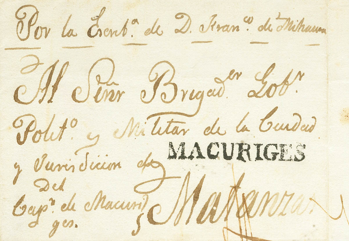 (1840ca). MACURIGES a MATANZAS (CUBA). Marca MACURIGES, en negro (P.E.1) edición 2004. MAGNIFICA Y EXTRAORDINARIAMENTE RARA.