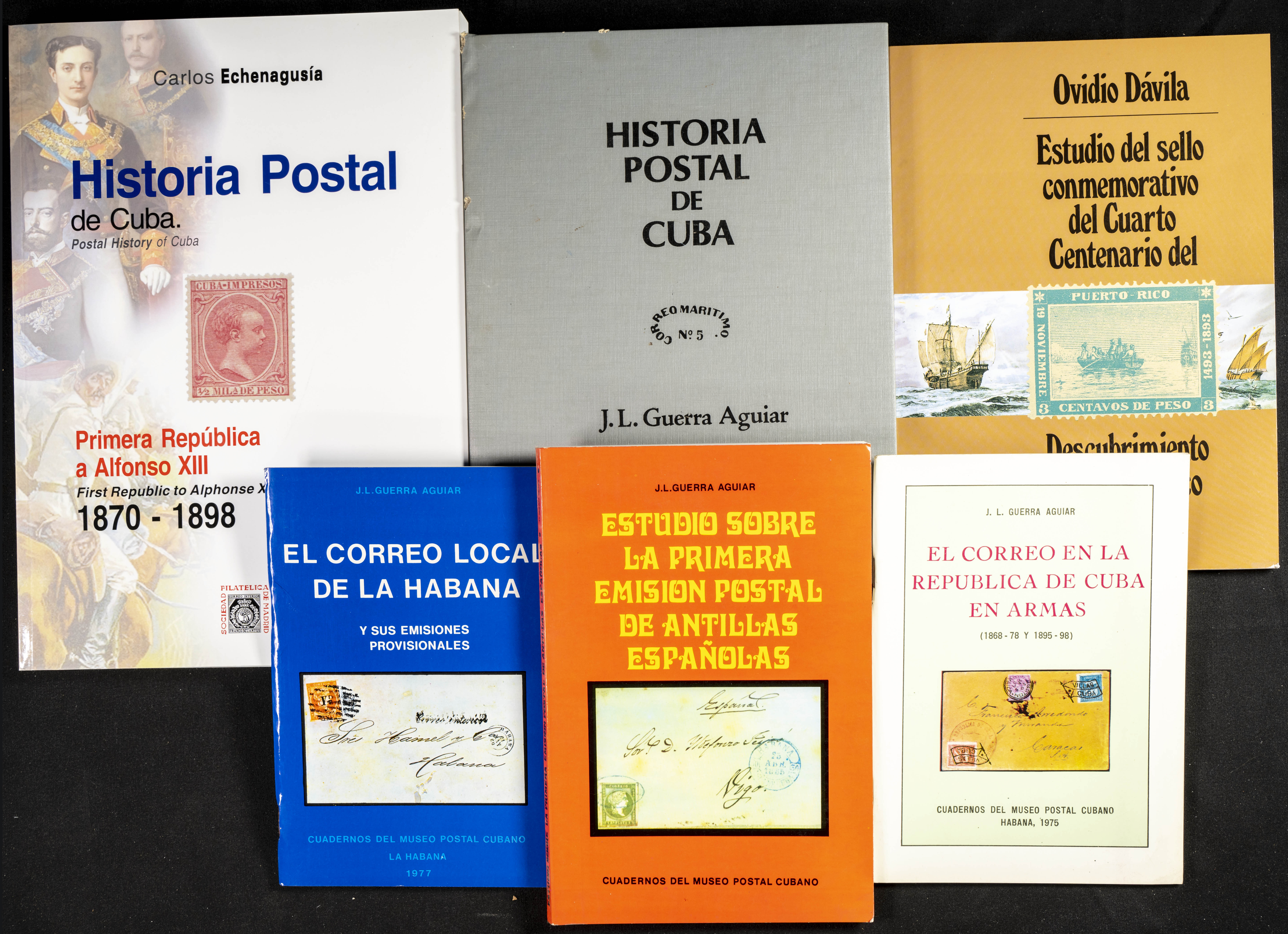 (1971ca). Conjunto de seis libros de Antillas, Cuba y Puerto Rico publicados entre 1975 y 2019, destacando Historia Postal de Cuba de J.L. Guerra Aguiar, Estudio de la Primera Emisión de Antillas, Estudio del sello del 4º Centenario de Puerto Rico de Ovidio Dávila e Historia Postal de Cuba 1870-1898 de Carlos Echenagusía. A EXAMINAR.