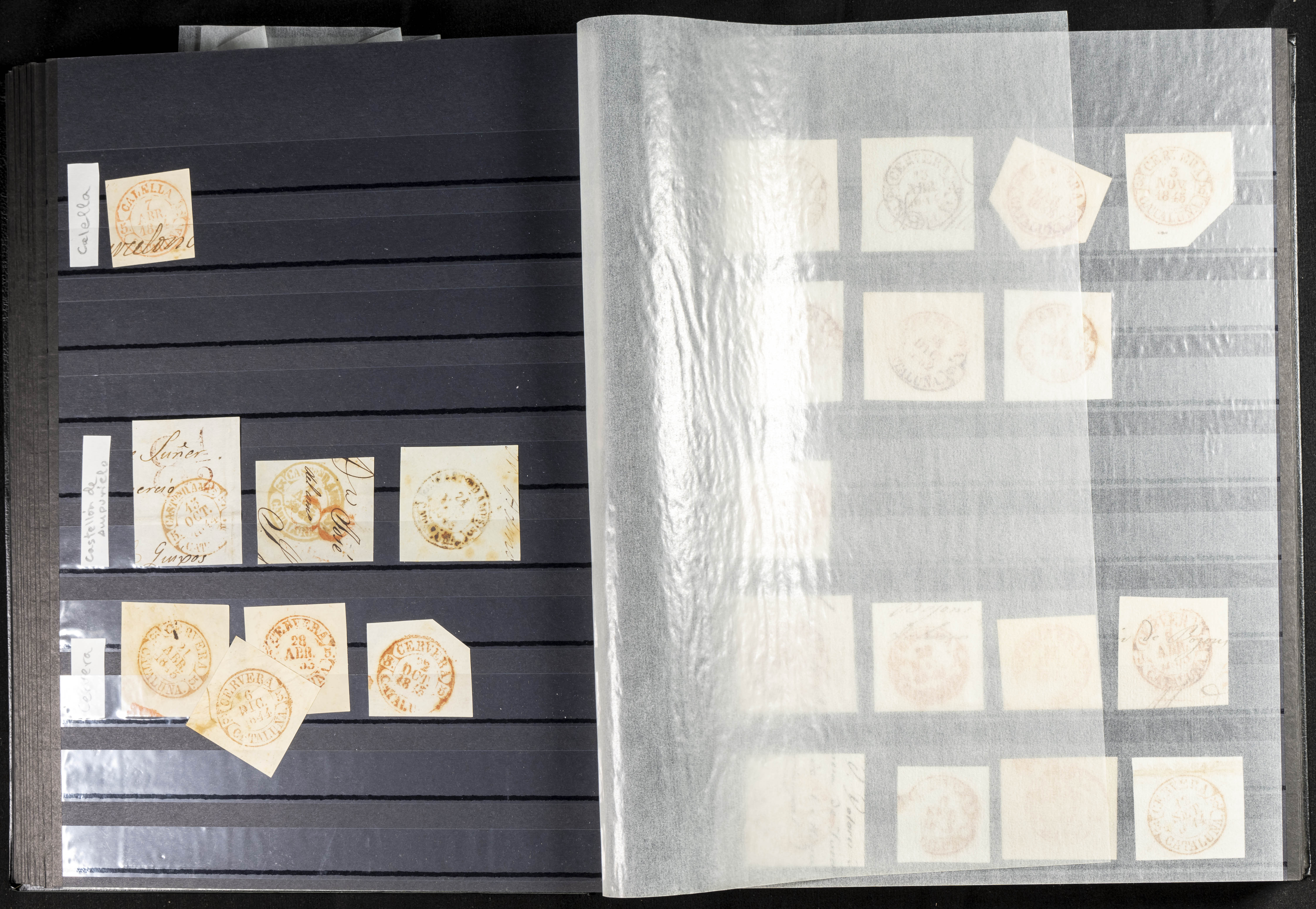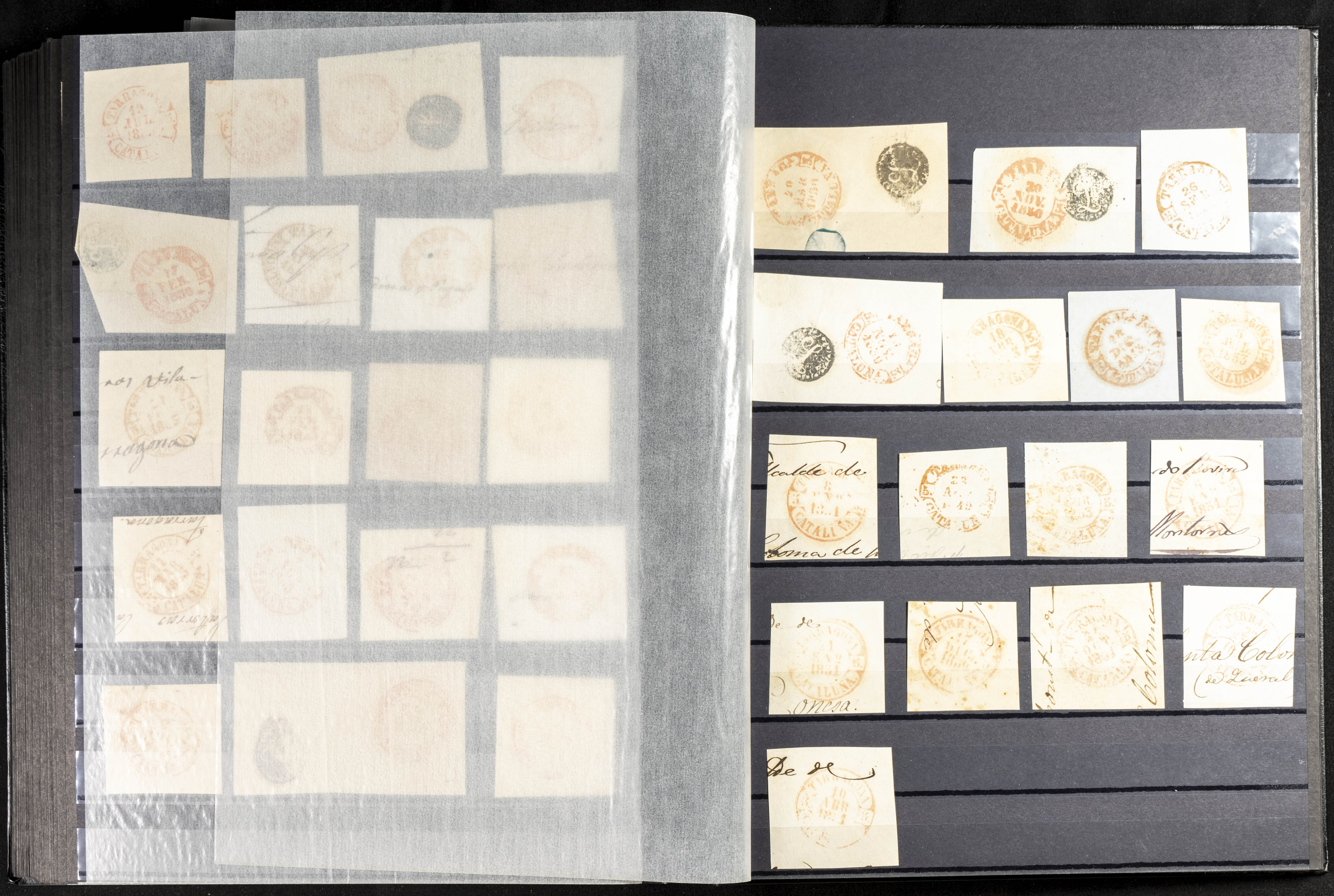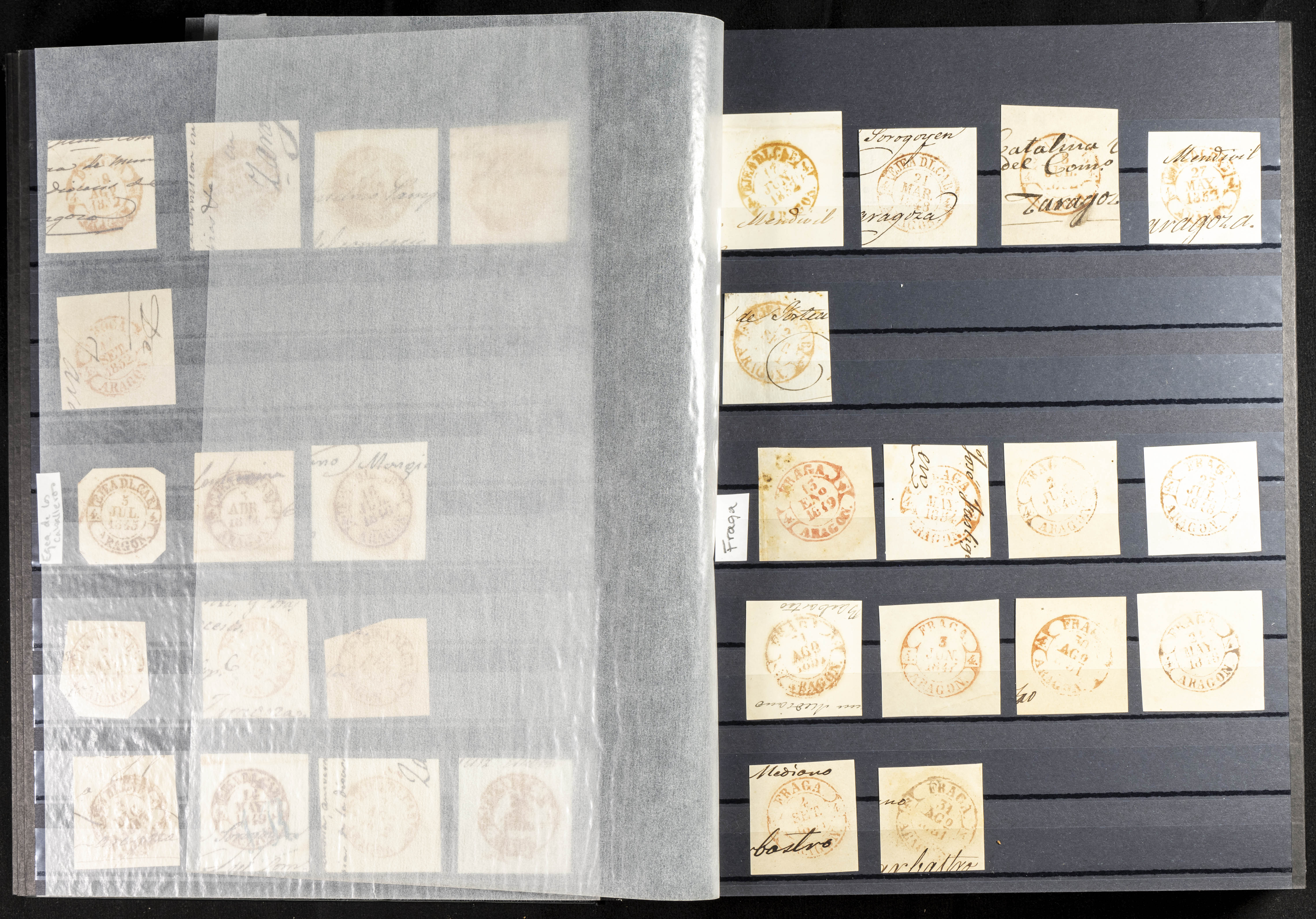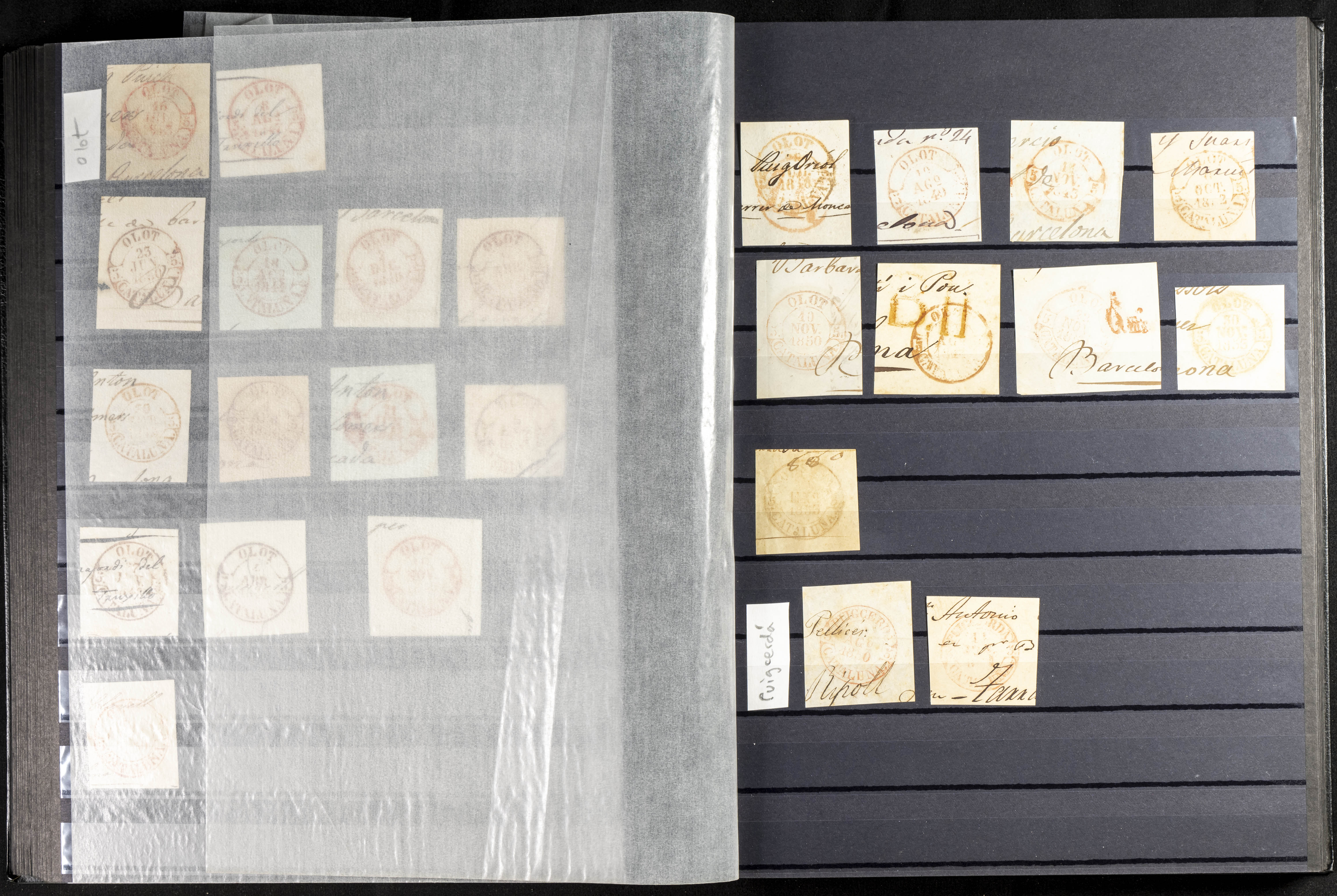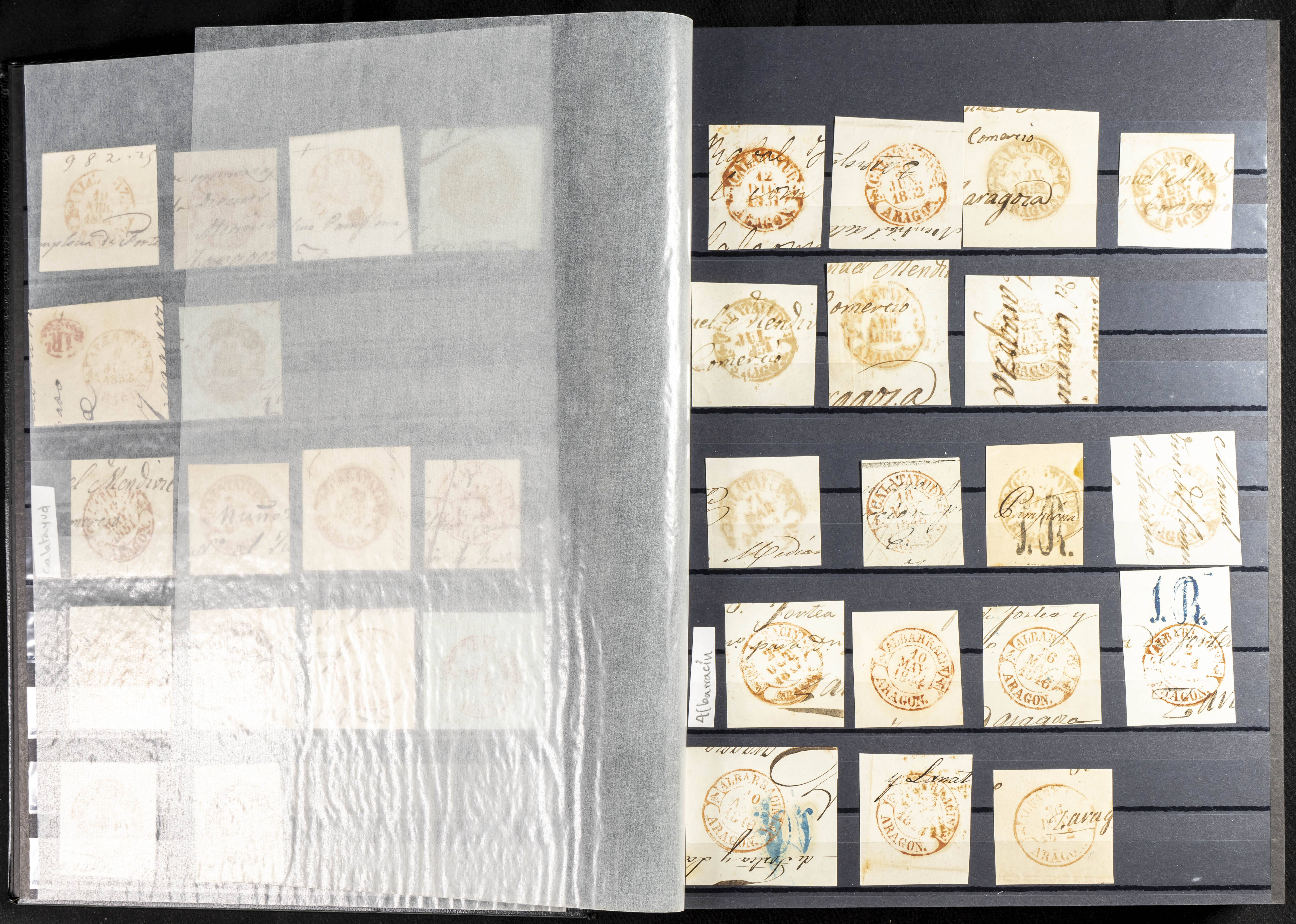 (1850ca). Estudio de referencia de Pedro Monge con más de mil cuatrocientos fragmentos recortados de fechadores originales tipo "baeza" de las demarcaciones postales de Aragón y Cataluña, muchos de gran calidad e incluyendo algunos baezas de Madrid capital. A EXAMINAR.