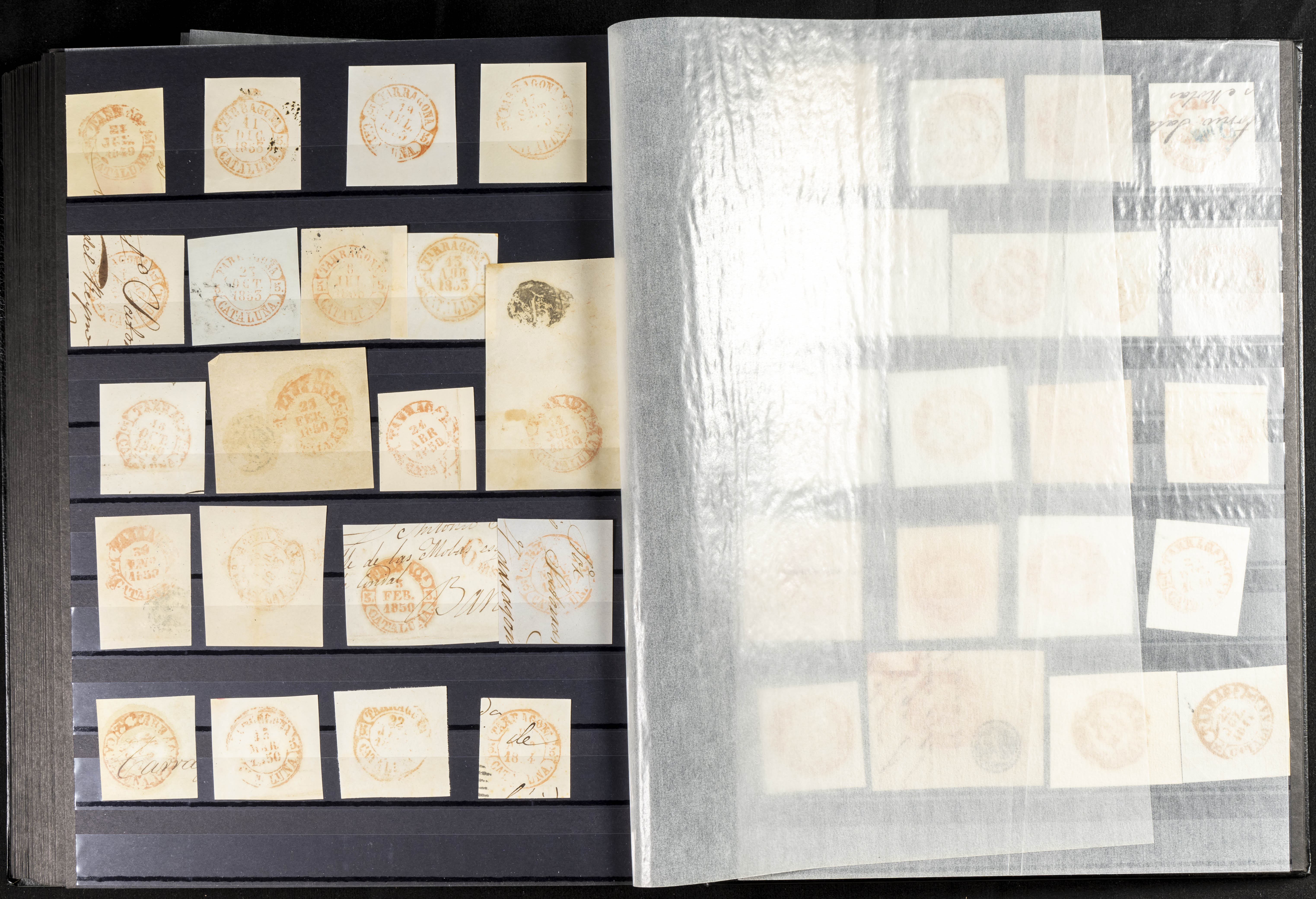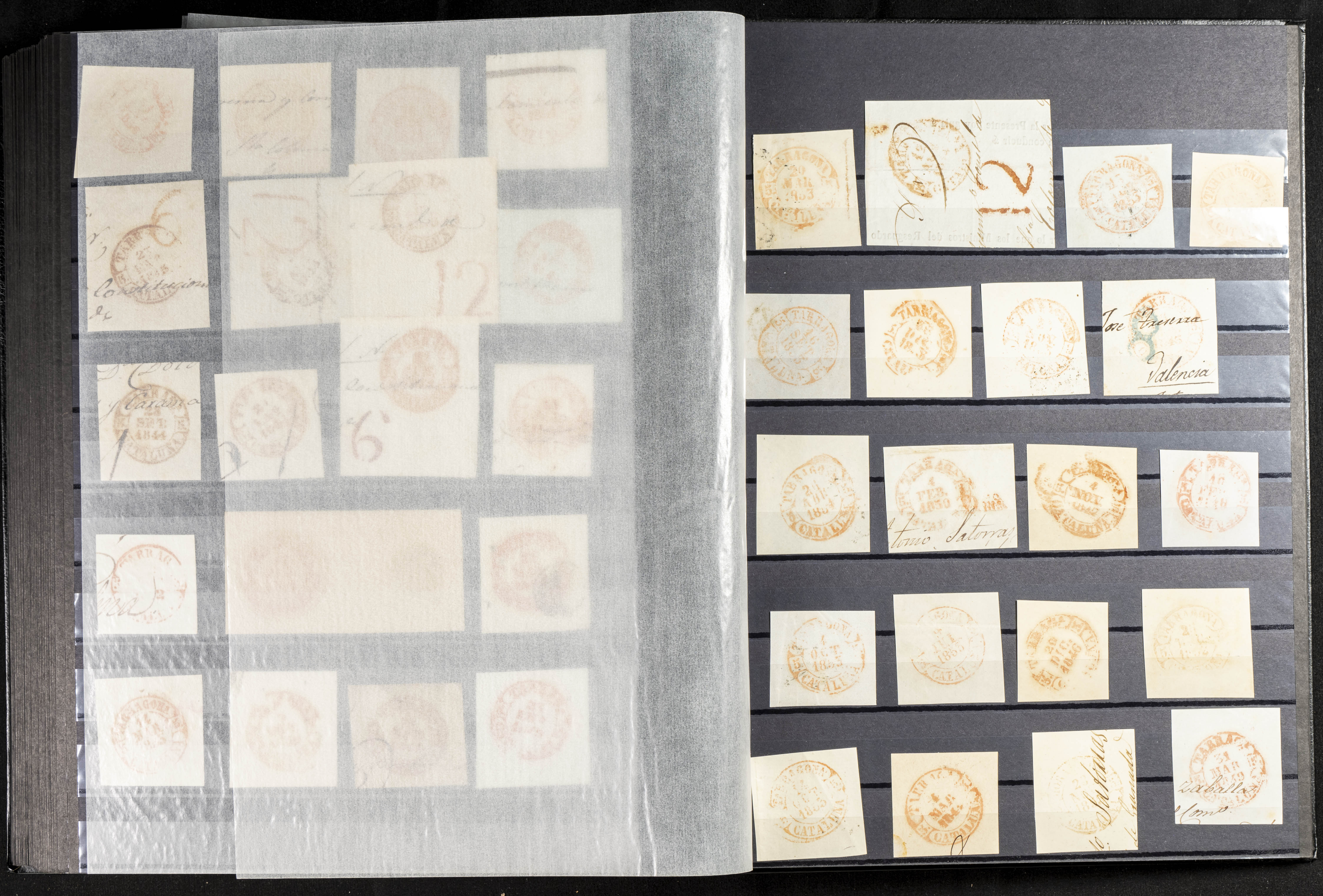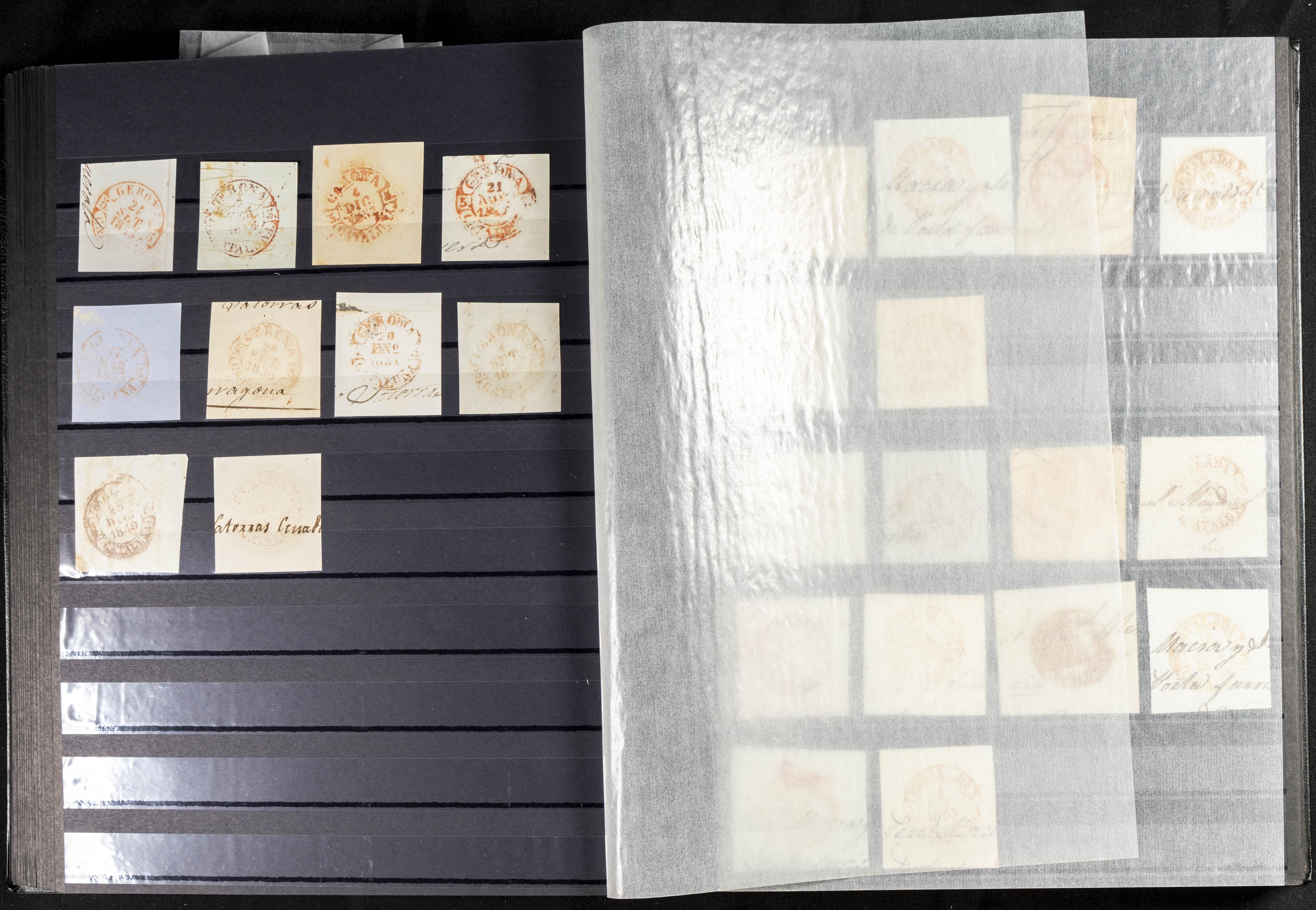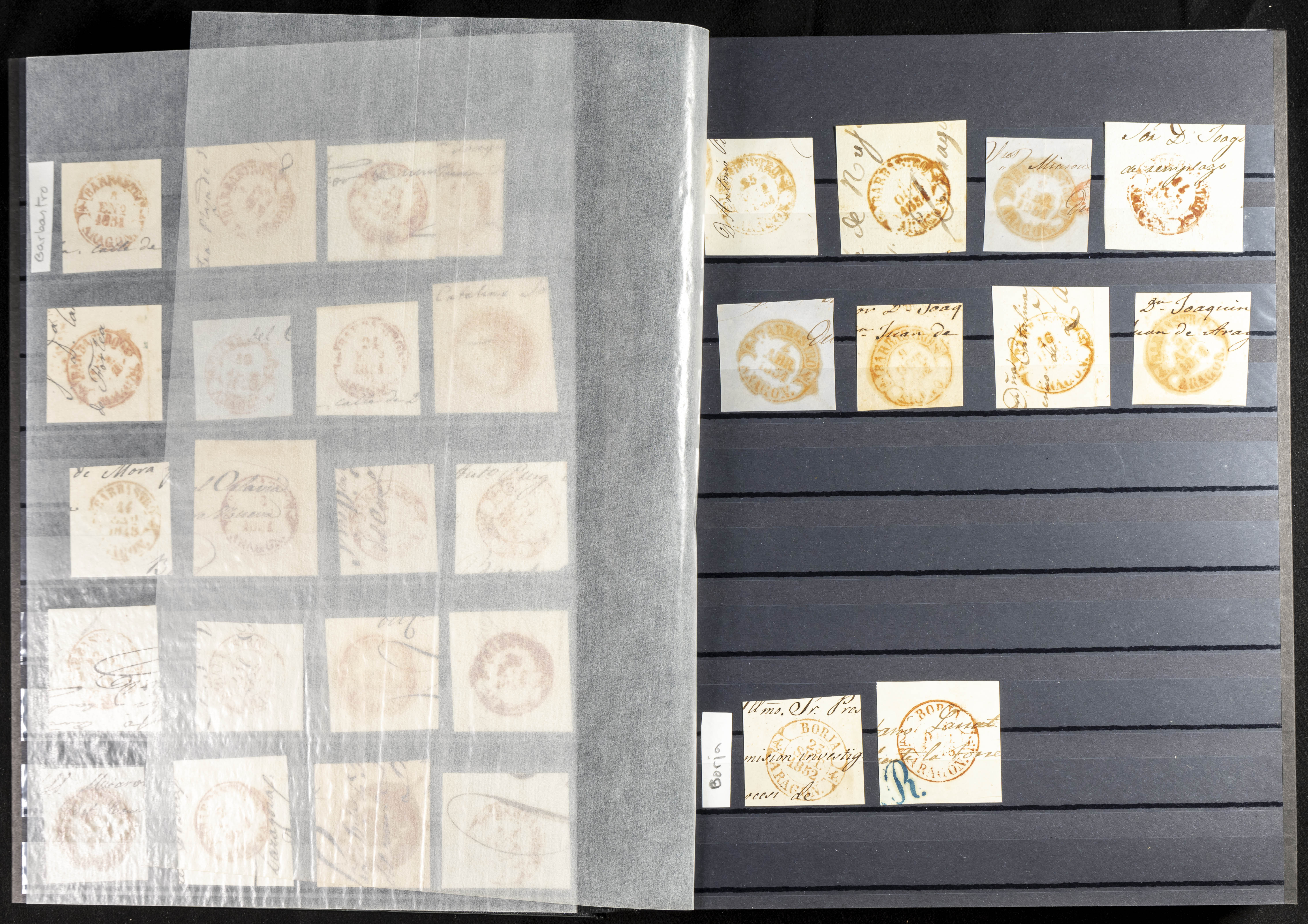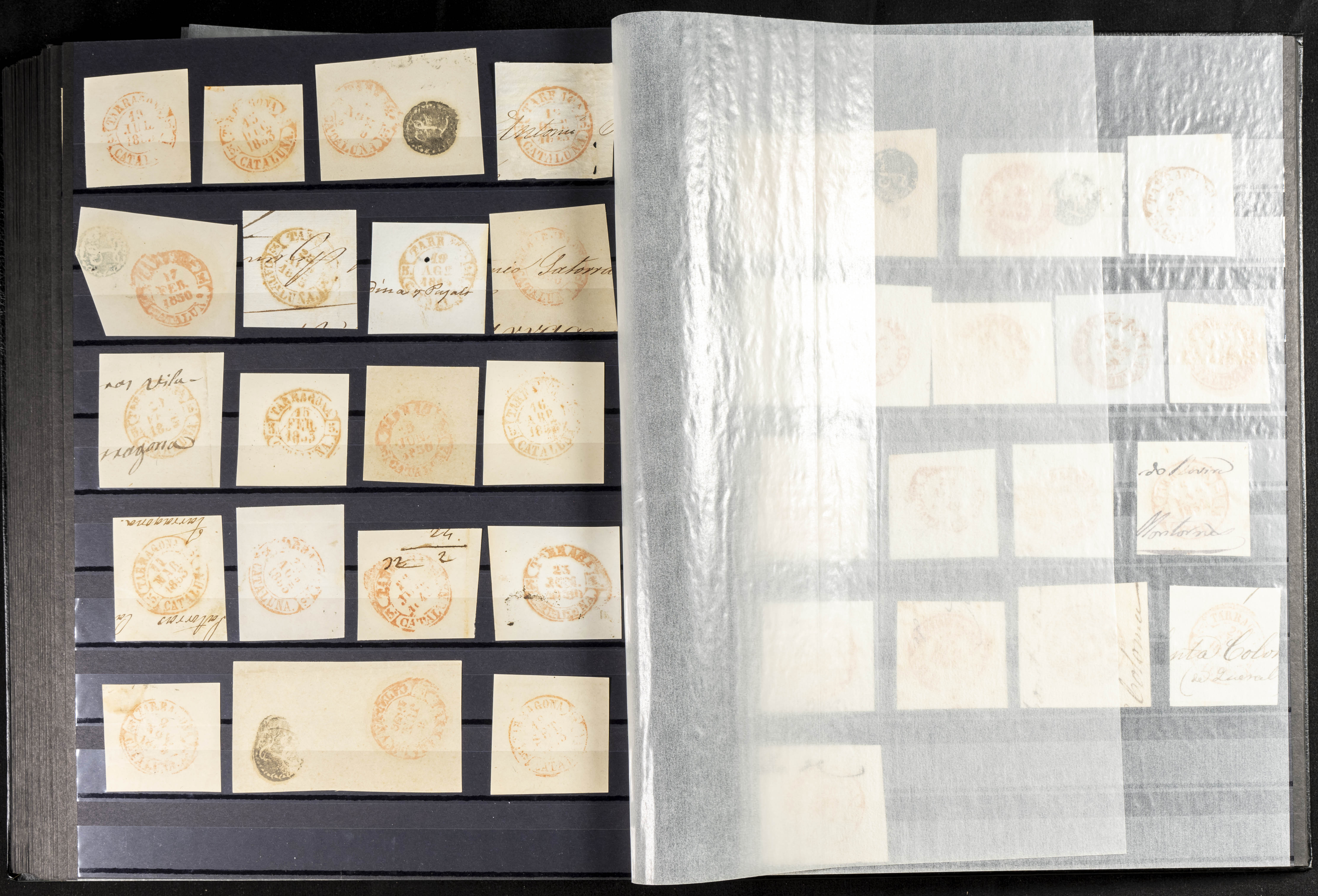 (1850ca). Estudio de referencia de Pedro Monge con más de mil cuatrocientos fragmentos recortados de fechadores originales tipo "baeza" de las demarcaciones postales de Aragón y Cataluña, muchos de gran calidad e incluyendo algunos baezas de Madrid capital. A EXAMINAR.