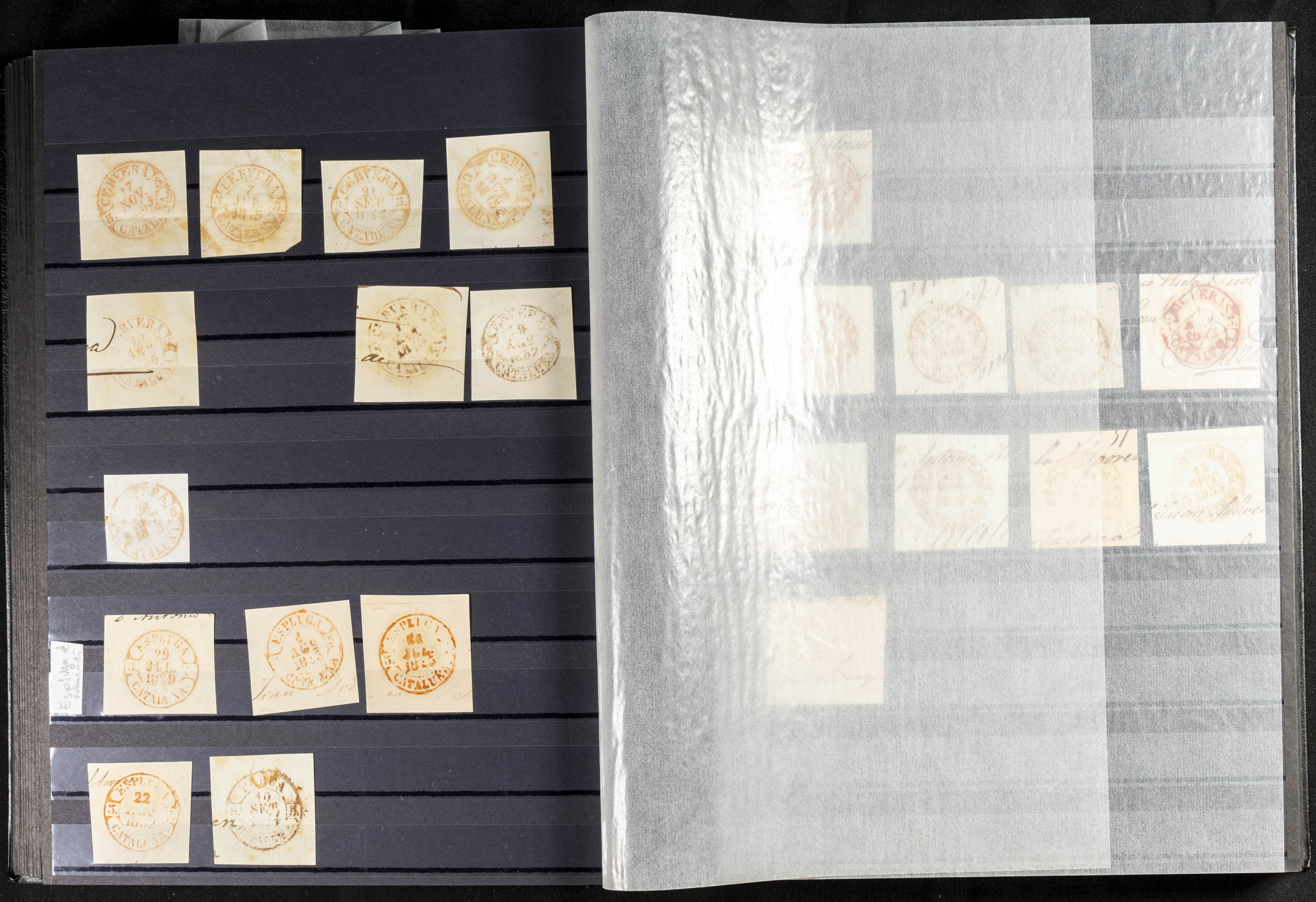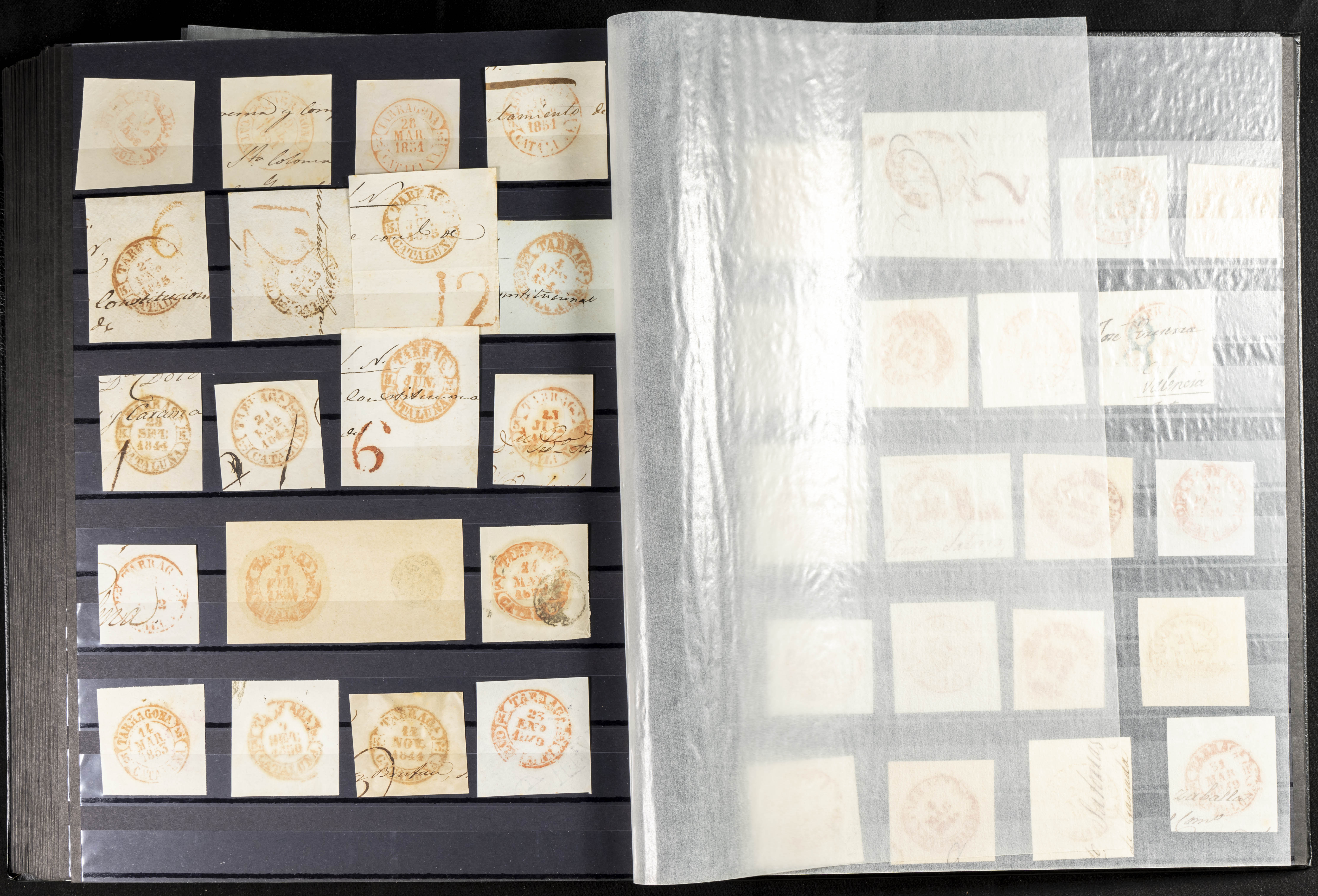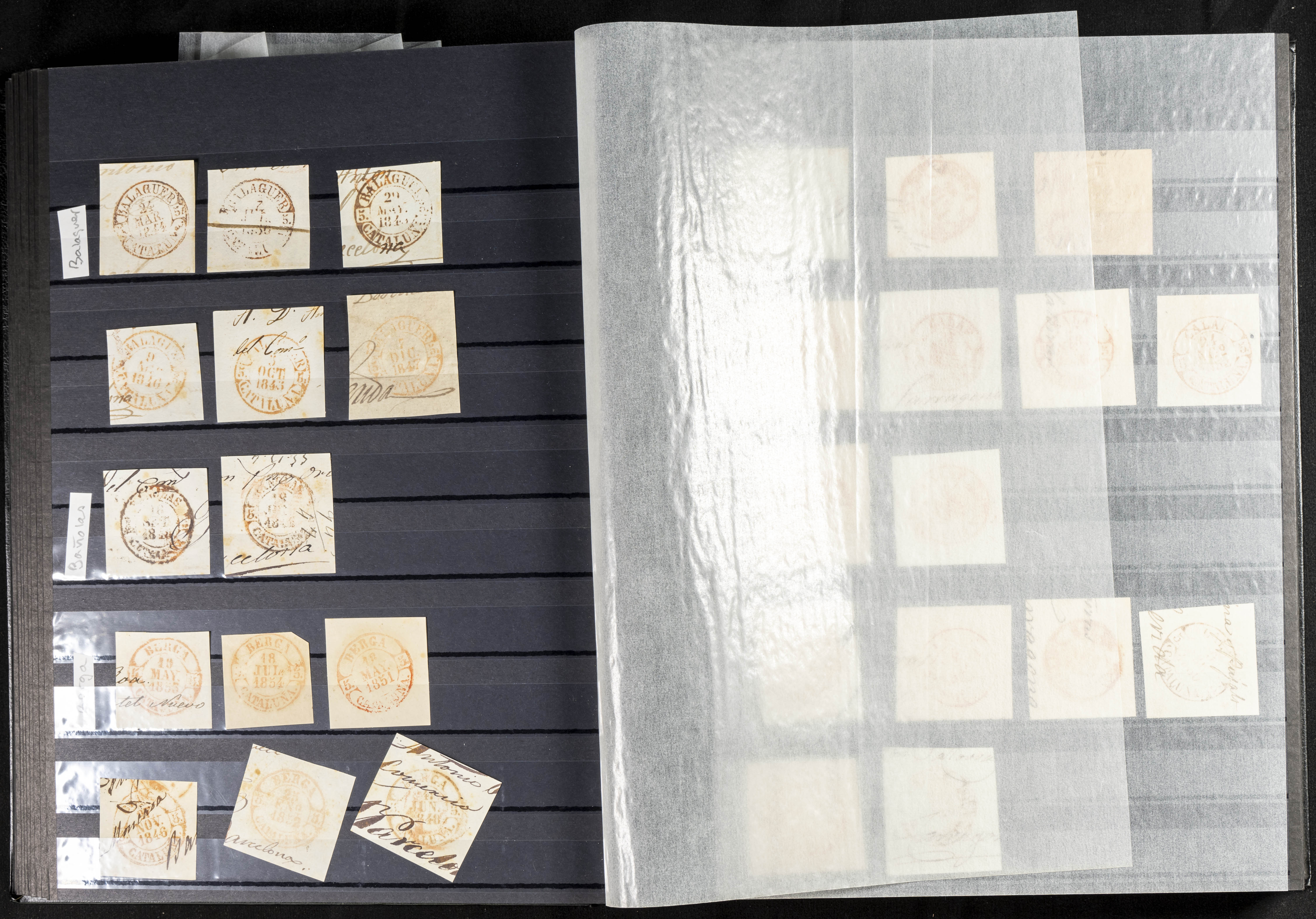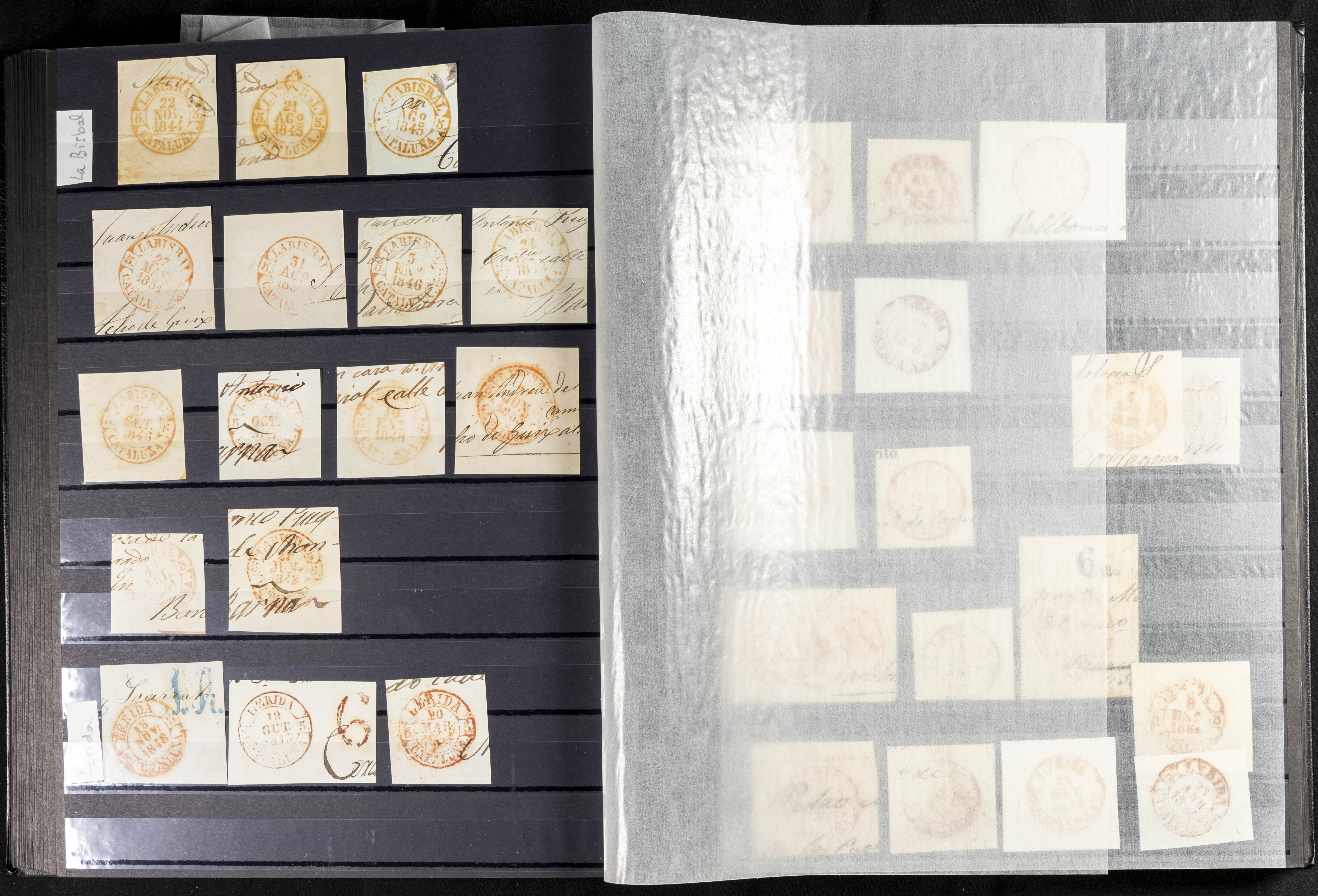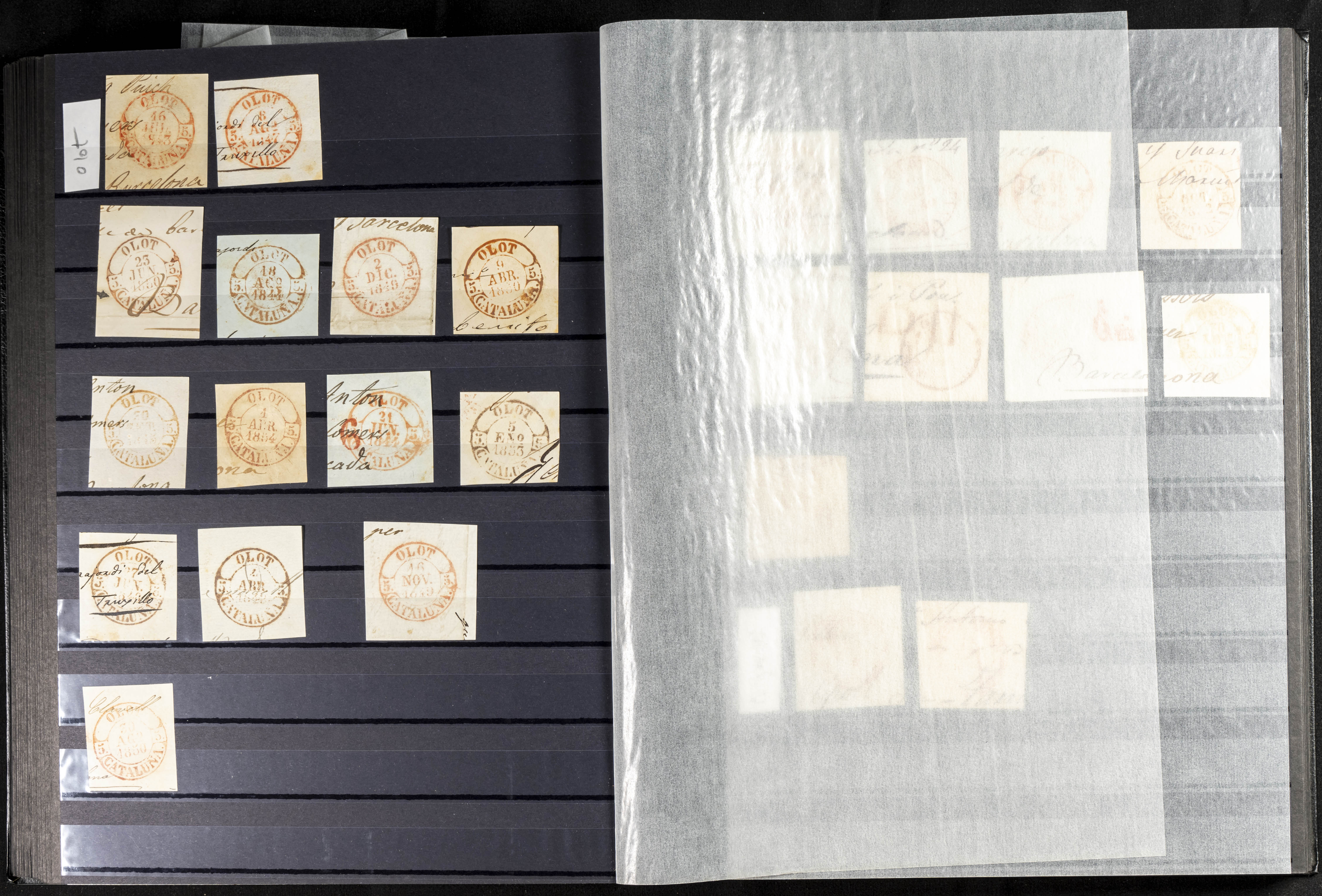 (1850ca). Estudio de referencia de Pedro Monge con más de mil cuatrocientos fragmentos recortados de fechadores originales tipo "baeza" de las demarcaciones postales de Aragón y Cataluña, muchos de gran calidad e incluyendo algunos baezas de Madrid capital. A EXAMINAR.