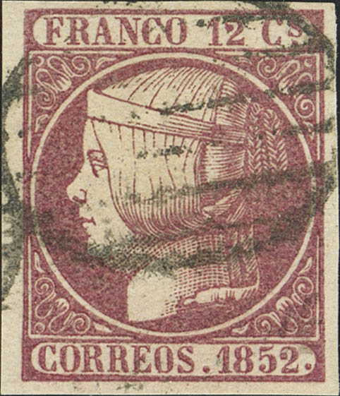 13. 1852. 12 cuartos lila. Excepcional color. MAGNIFICO. Cert. COMEX.