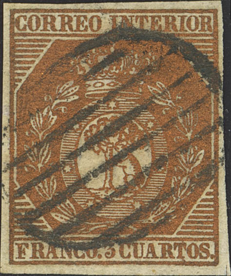 23F. 1853. 3 cuartos bronce. FALSO SPERATI (Tipo A), al dorso marca de la B.P.A. MAGNIFICO.