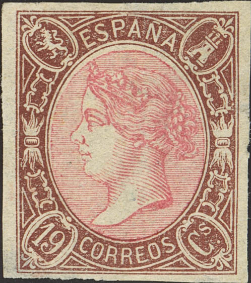 ★ 71. 1865. 19 cuartos castaño y rosa (leve adelgazamiento en esquina). MAGNIFICO.