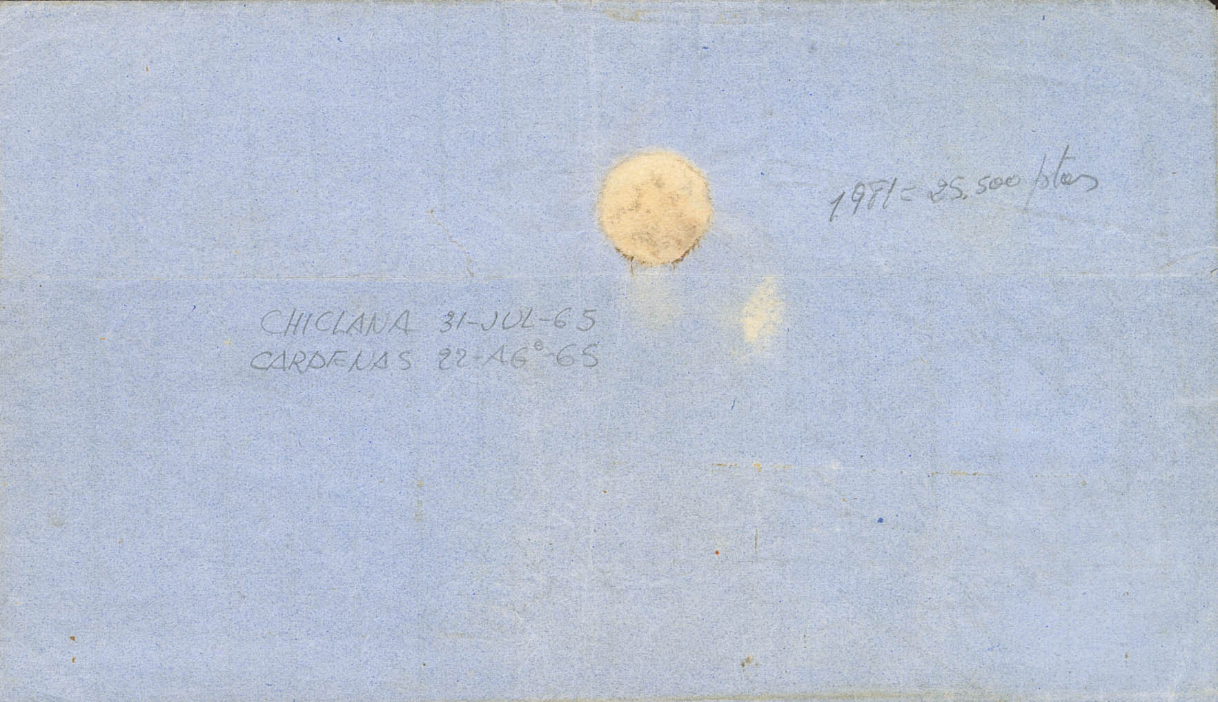 72. 1865. 1 real verde. CHICLANA a CARDENAS (CUBA). Matasello CHICLANA / CADIZ. MAGNIFICO Y RARO DESTINO-ORIGEN.