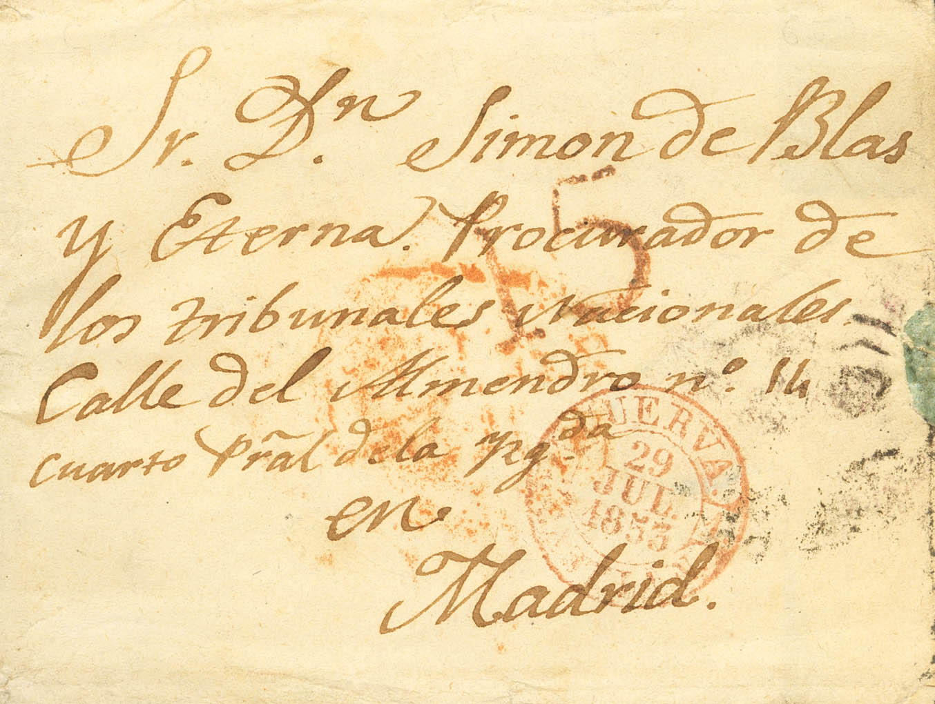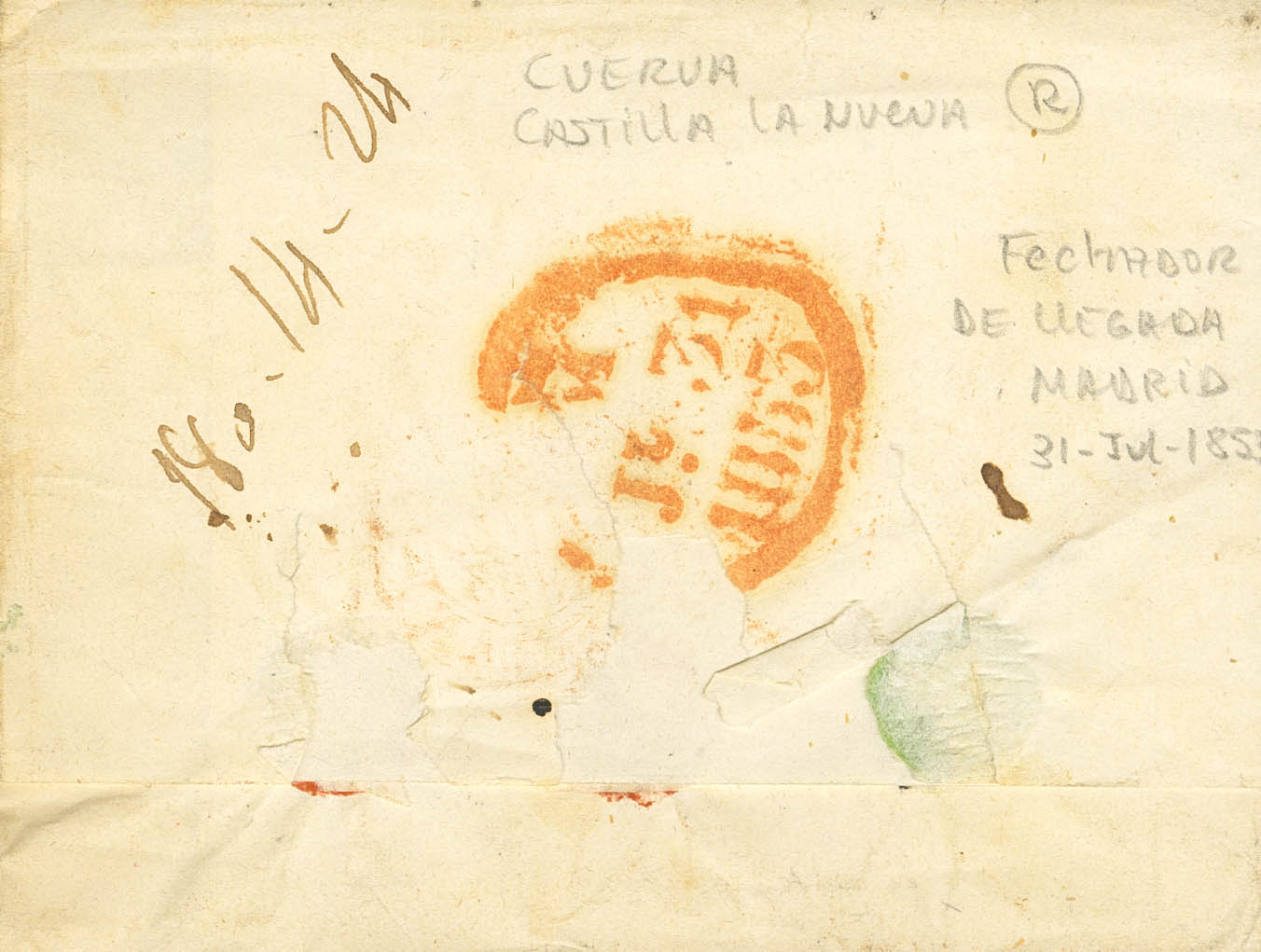 1853. CUERVA (TOLEDO) a MADRID. Baeza CUERVA / CAST.LA N. MAGNIFICA Y MUY RARA.