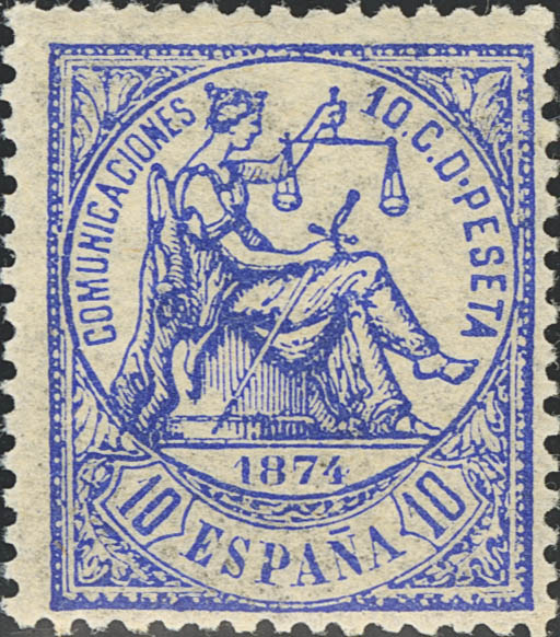 ★★ 145. 1874. 10 cts azul. Color intenso. BONITO.