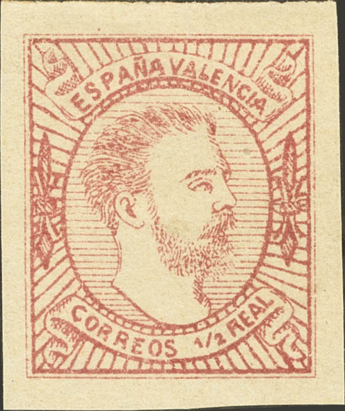 ★ 159A. 1874. ½ real rosa (Tipo II). MAGNIFICO. Dictamen GRAUS.