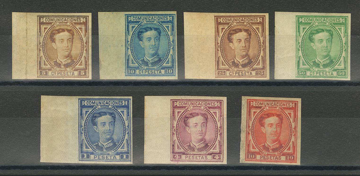 ★★ 174/82s. 1876. Serie completa, siete valores (a falta del 20 cts verde). SIN DENTAR. MAGNIFICA.