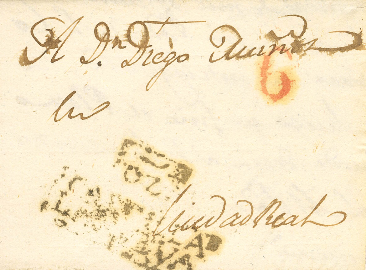 1822. MANZANEQUE (TOLEDO) a CIUDAD REAL. Marca OZ / CASTILLA / LANUEVA, en negro de Orgaz en tránsito (P.E.2) edición 2004. MAGNIFICA Y MUY RARA.