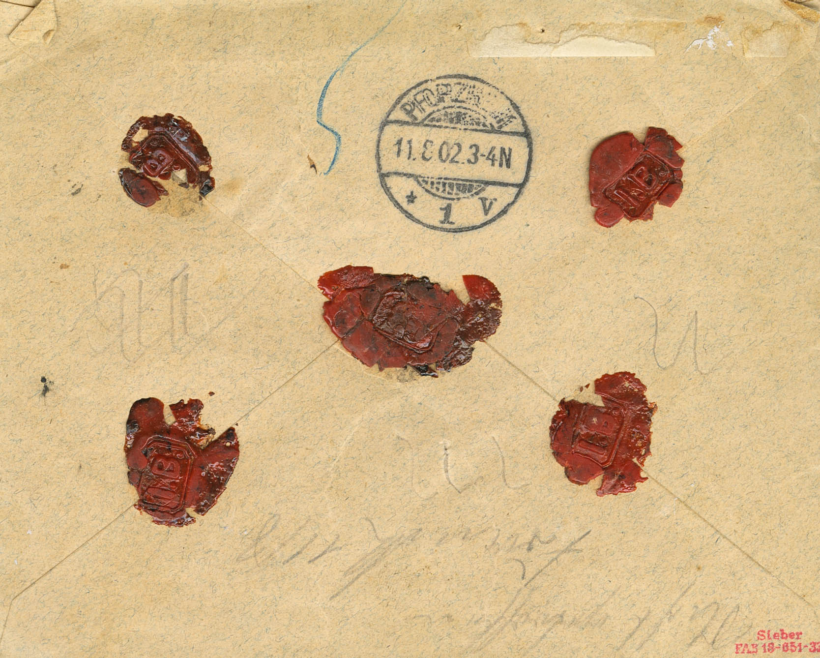 248, 252. 1902. 25 cts azul y 50 cts azul verde. Certificado de BARCELONA a PFORZHEIM (ALEMANIA). Al dorso llegada. MAGNIFICA.