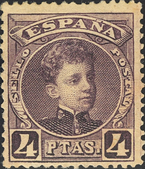 ★★ 254. 1901. 4 pts violeta negruzco (doblez de la goma que no llega a romper la fibra). MAGNIFICO Y RARO. Edifil 2025: 435 Euros