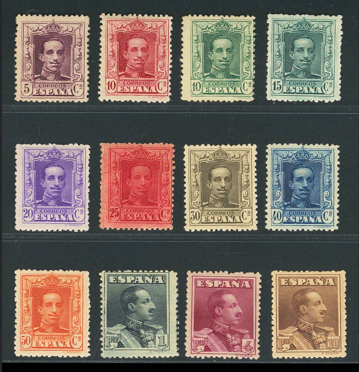 ★ 310/23N. 1920. Serie completa, a falta del 5 cts carmín, 15 cts gris y 25 cts carmín. NºA000000. MAGNIFICA. Edifil 2020: 342 Euros
