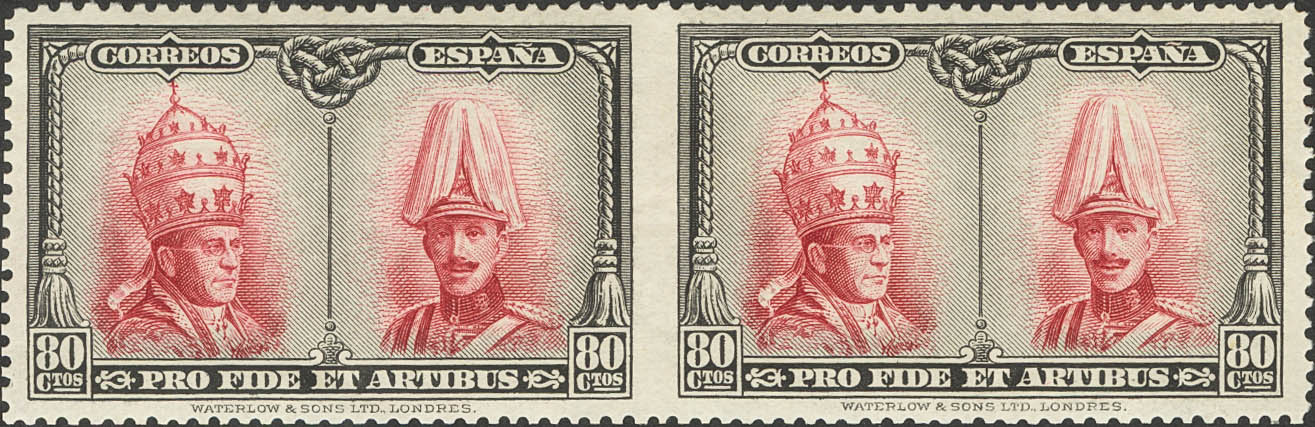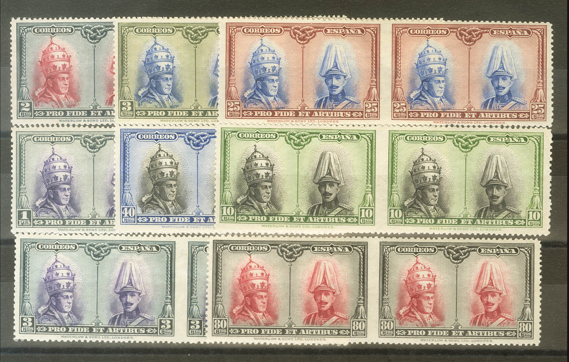 ★★ 402/29sph. 1928. Serie completa, ocho valores. Variedad PAREJAS SIN DENTAR ENTRE LOS SELLOS. MAGNIFICA Y MUY RARA. Edifil 2020: 680 Euros