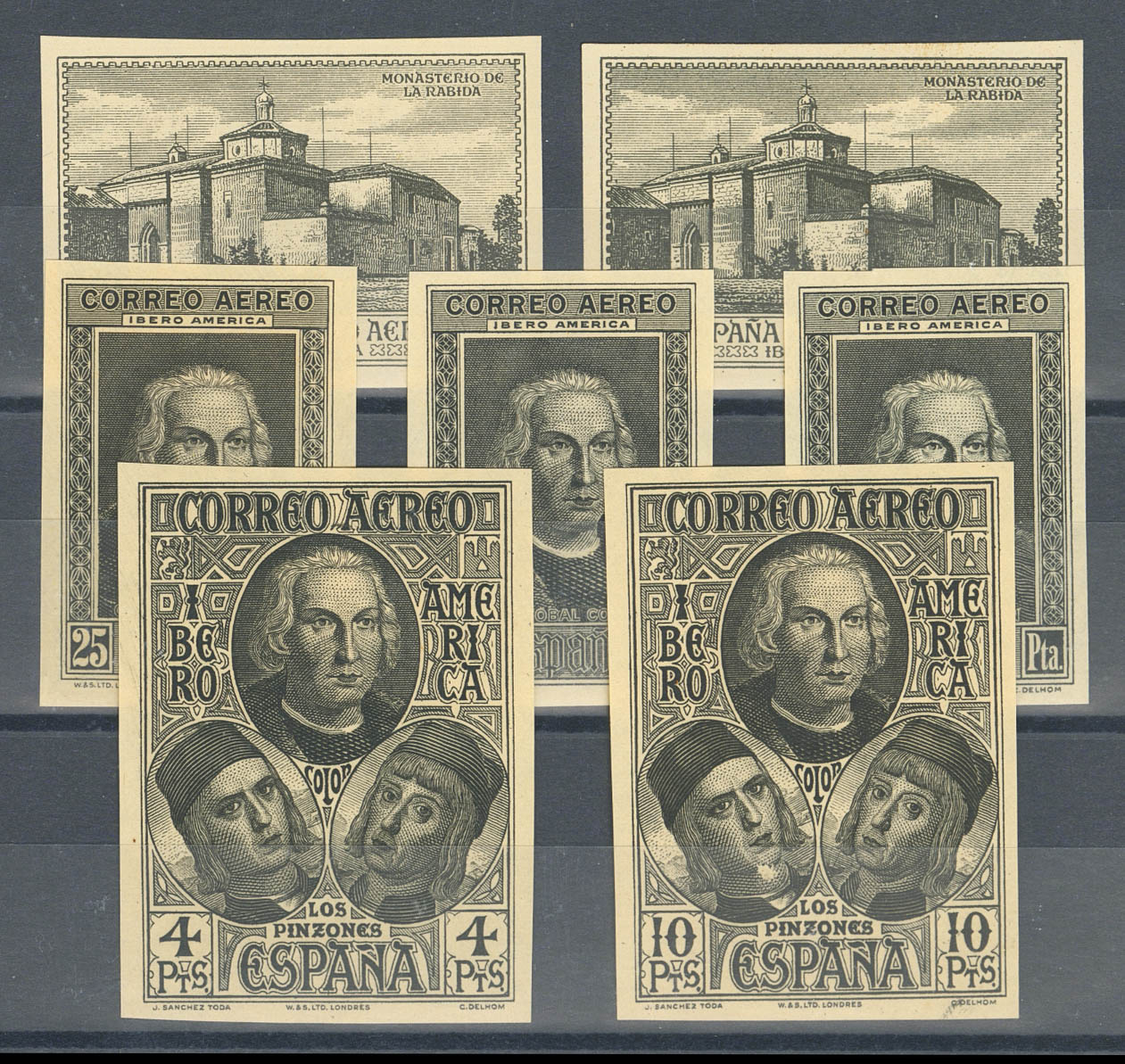 (★) 559/65P. 1930. Serie completa. ENSAYOS DE PLANCHA Y SIN DENTAR, en negro. MAGNIFICA. (Gálvez CA357/63)