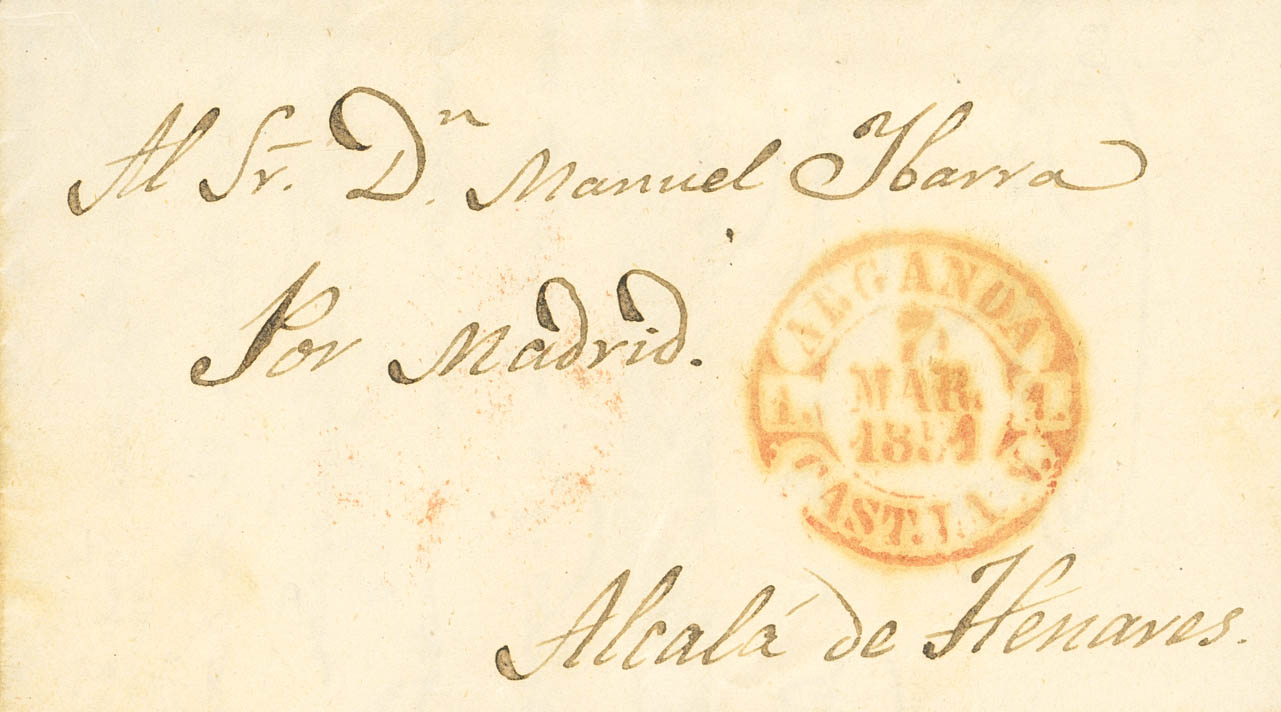 1851. ARGANDA DEL REY a ALCALA DE HENARES. Baeza ARGANDA / CAST.LA N. MAGNIFICA Y RARISIMA.