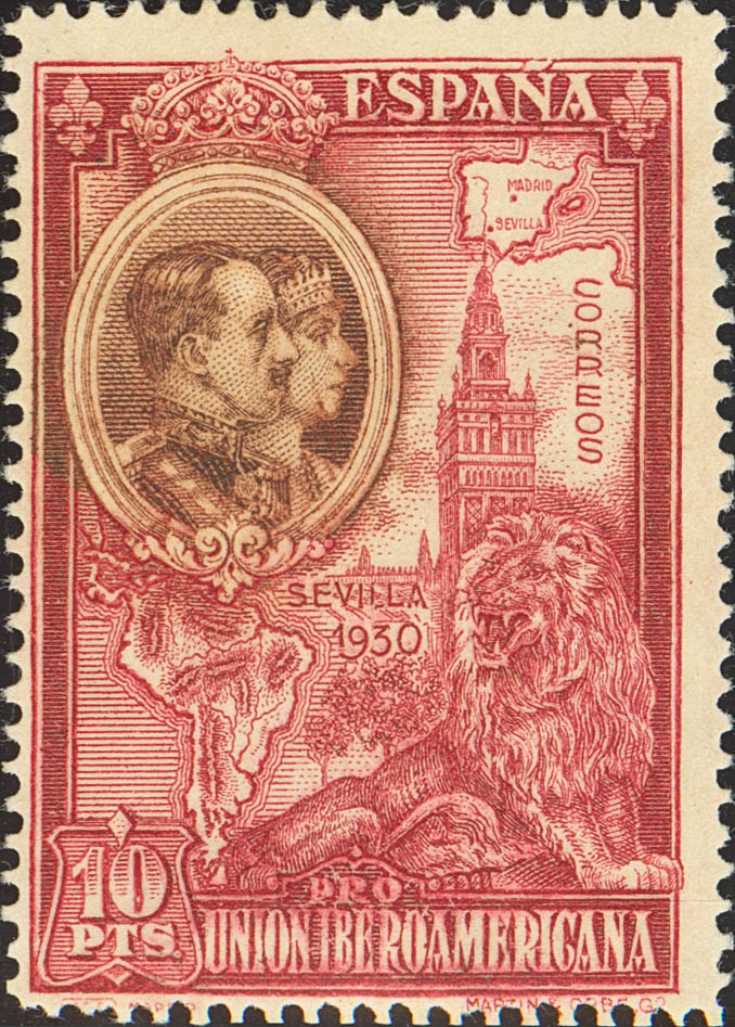 ★ 581cc. 1930. 10 pts carmín y castaño. COLOR CAMBIADO. MAGNIFICO Y RARISIMO, NO CATALOGADO DENTADO.