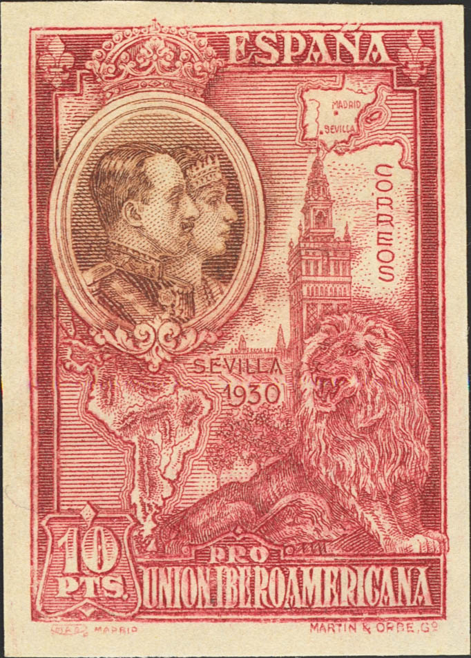 ★ 581ccs. 1930. 10 pts carmín y castaño. COLOR CAMBIADO y SIN DENTAR. MAGNIFICO Y RARO. (Gálvez 2833).