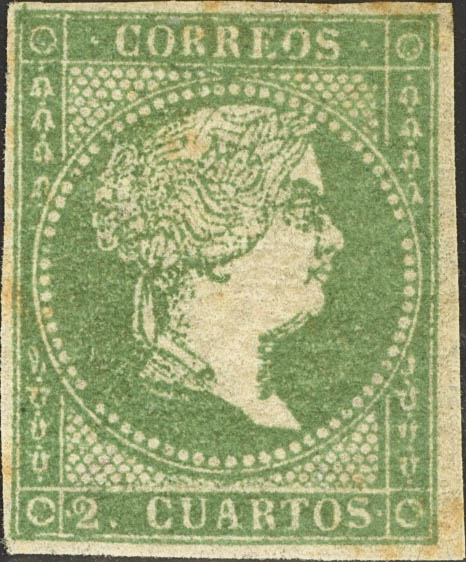 ★ 43. 1855. 2 cuartos verde. MAGNIFICO. Cert. COMEX.