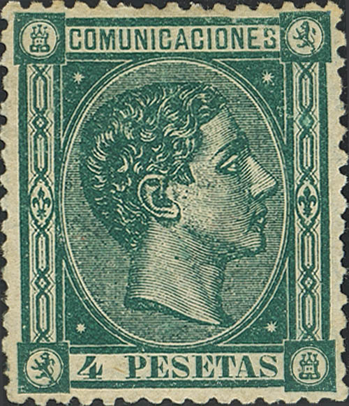 ★ 170. 1875. 4 pts verde. Muy bonito centraje y color intenso. MAGNIFICO. Cert. COMEX.