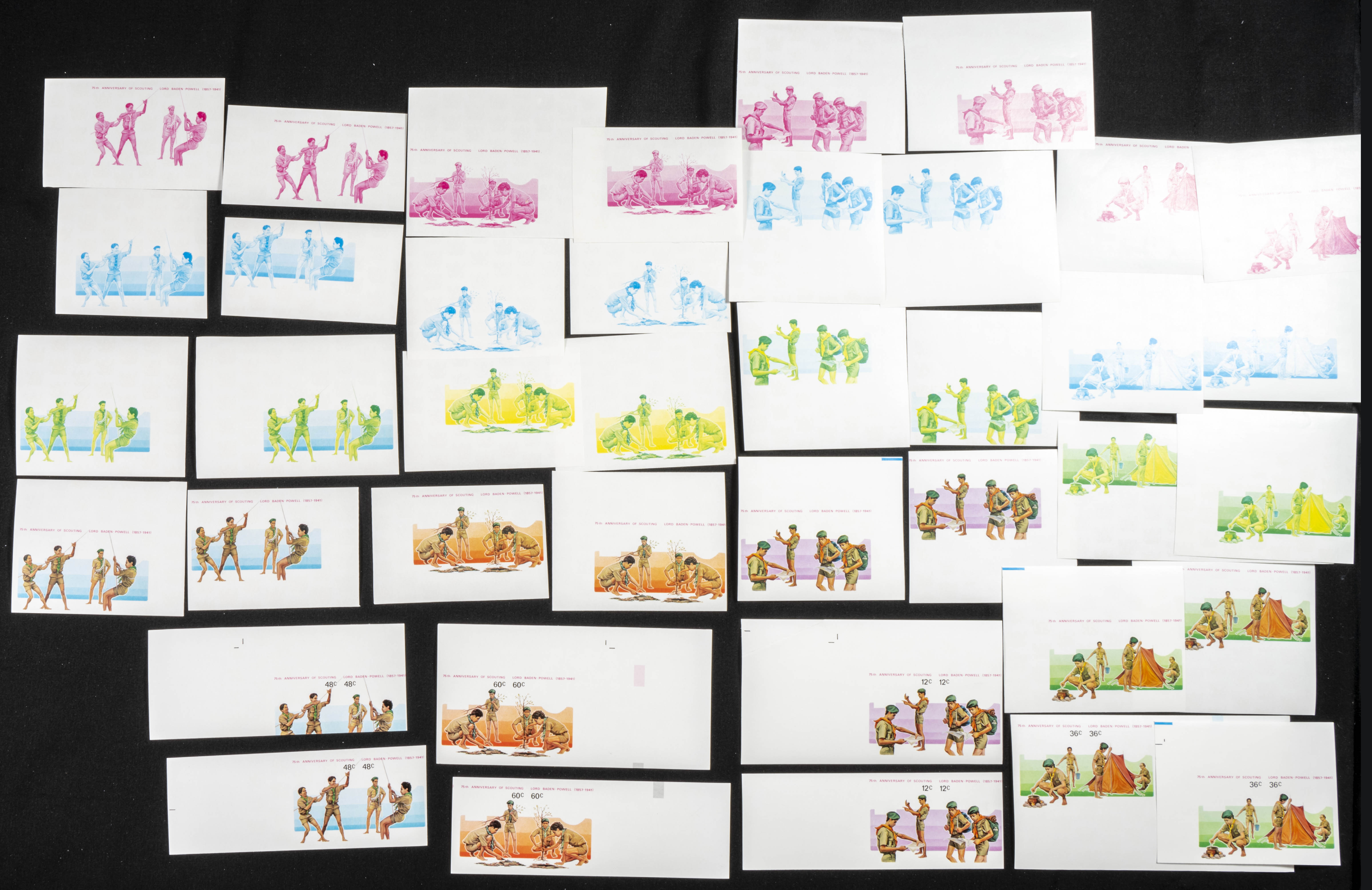 ★★Yvert 694/01. 1983. Scouting. Group of progressive plate proofs of the set. TO EXAM.
