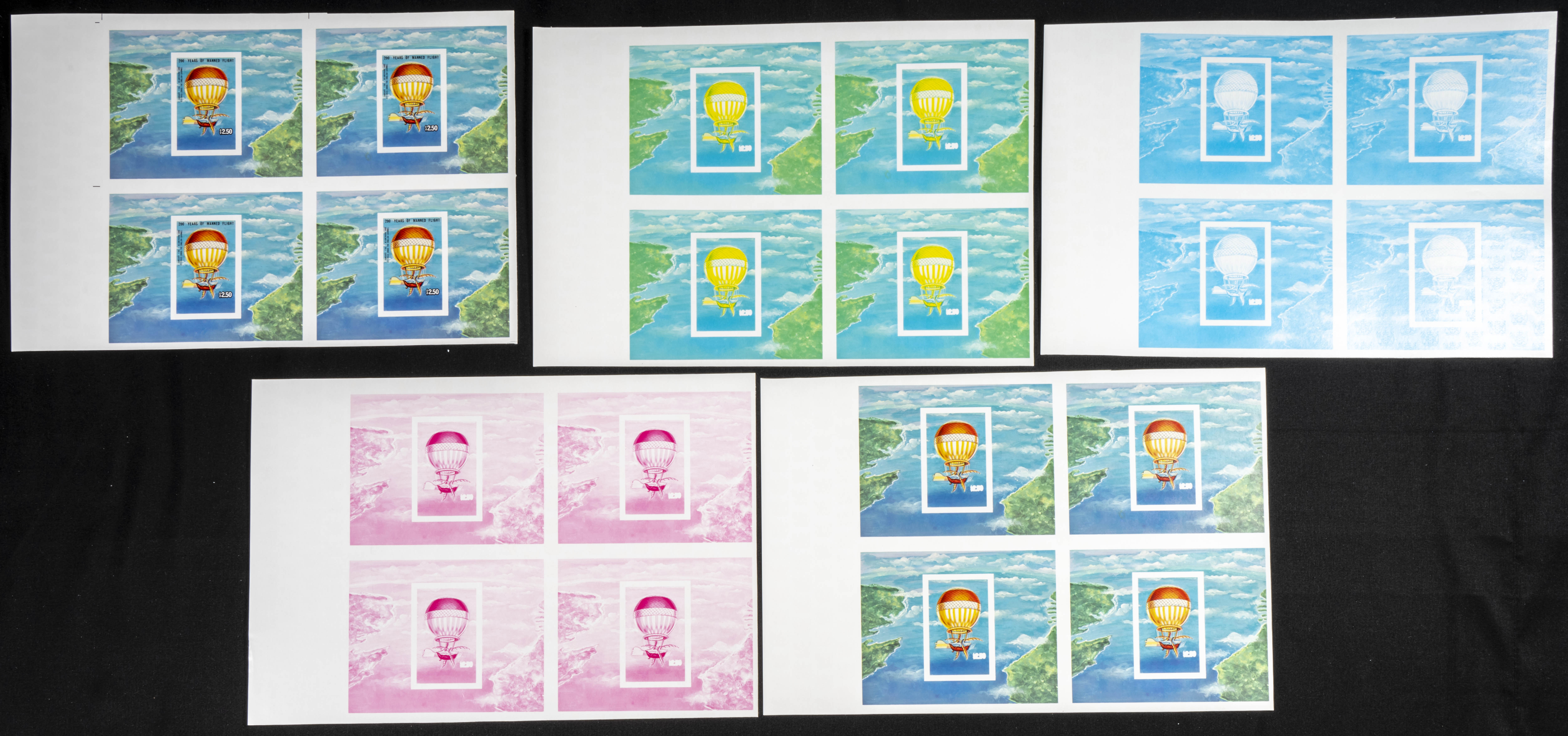 ★★Yvert B143. 1984. Aviation bi-centenary. Group of progressive plate proofs of the set. TO EXAM.