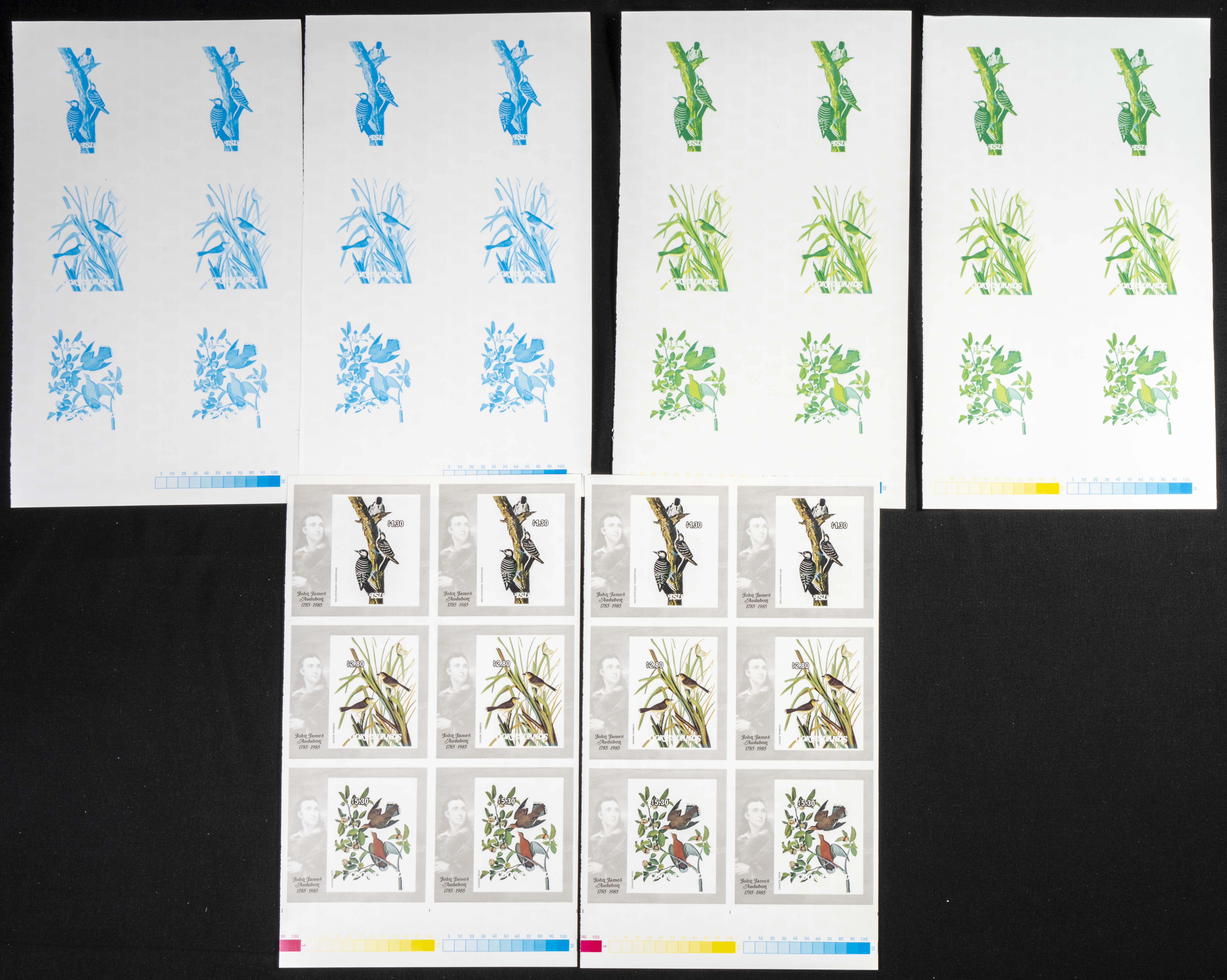 ★★Yvert B152/54. 1985. J.J. Audubon. Group of progressive plate proofs of the set. TO EXAM.