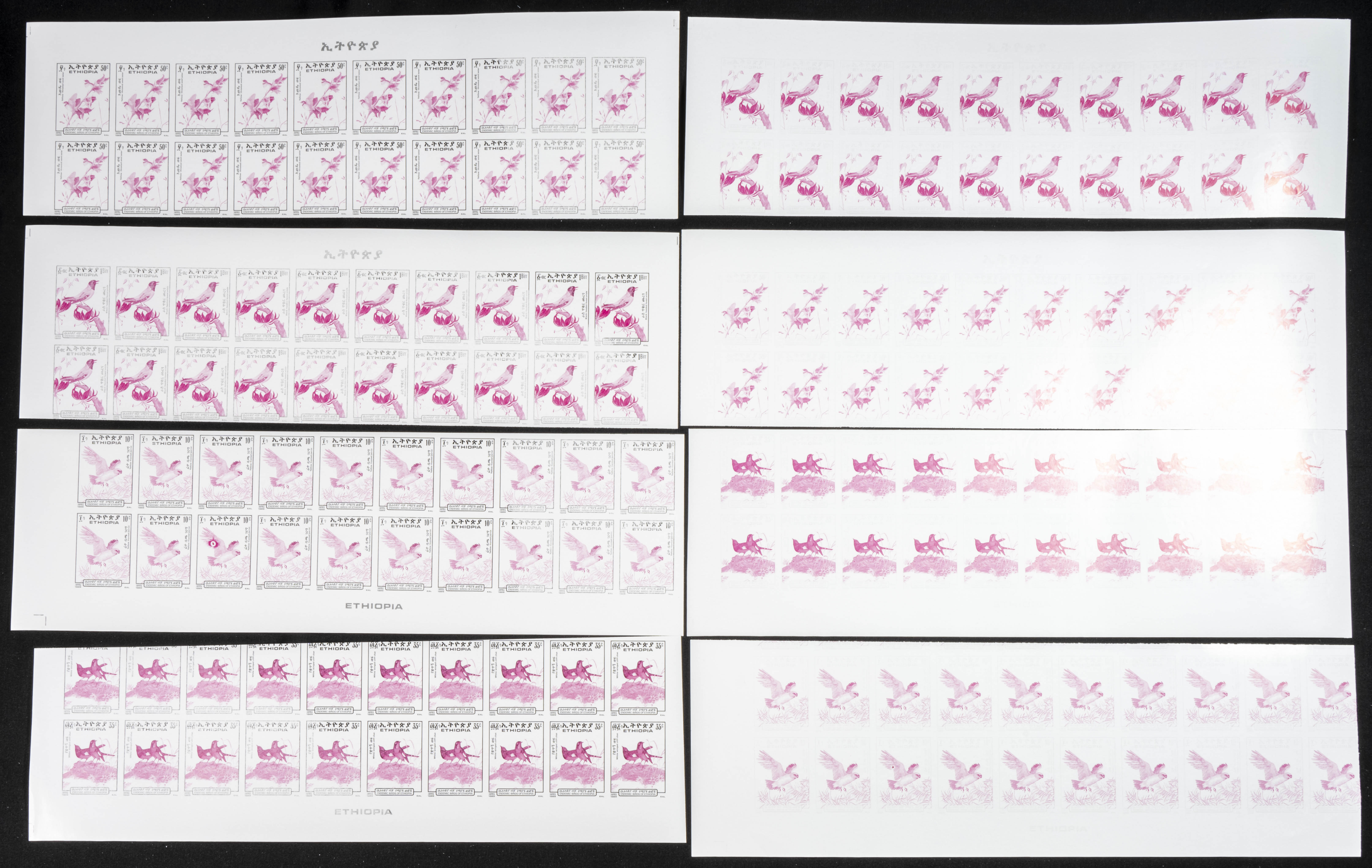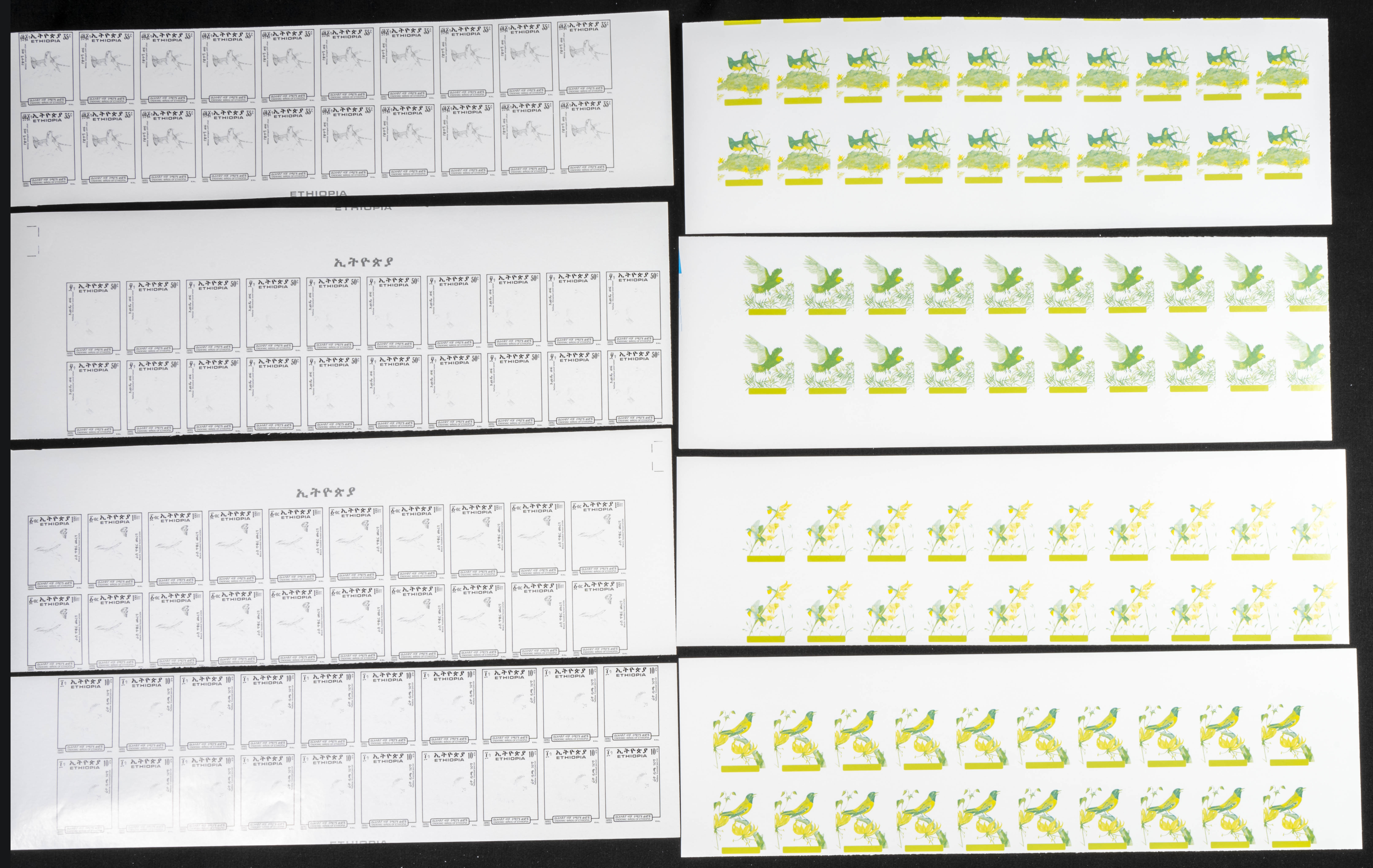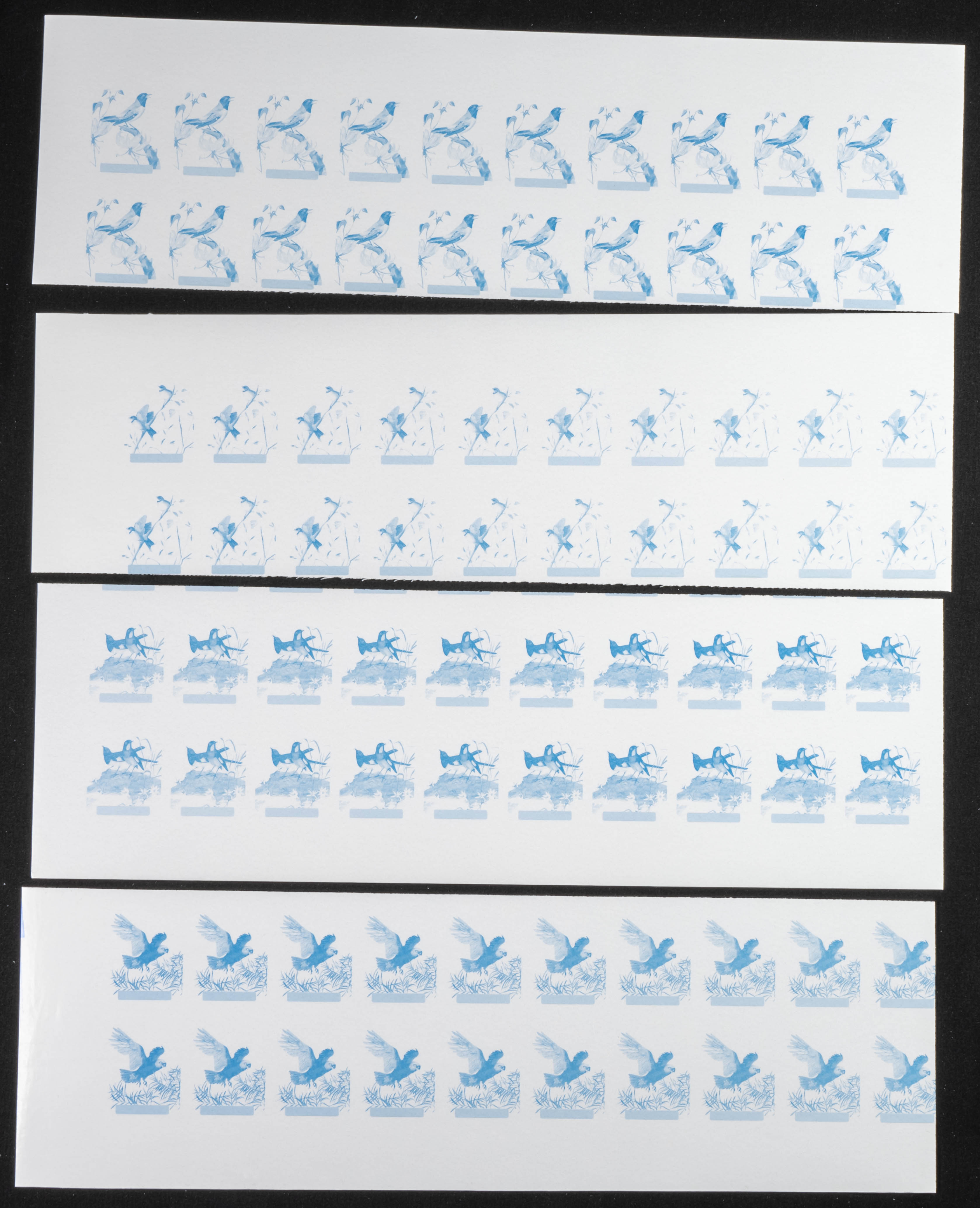 ★★Yvert 1246/49. 1989. Birds. Group of progressive plate proofs of the set. TO EXAM.