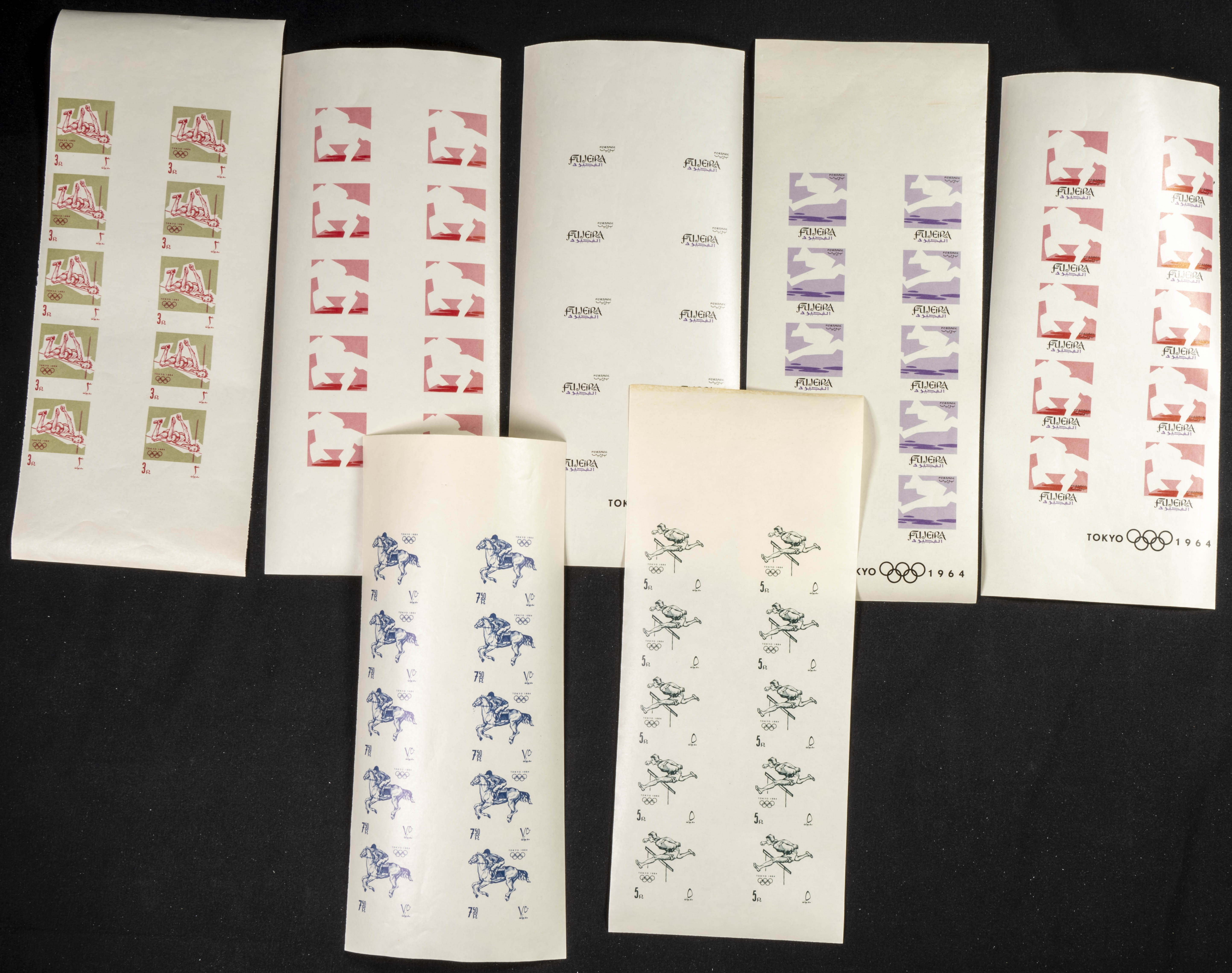 ★★1965. Olympic games. Group of progressive plate proofs of the set. (Michel: 19/27). TO EXAM.