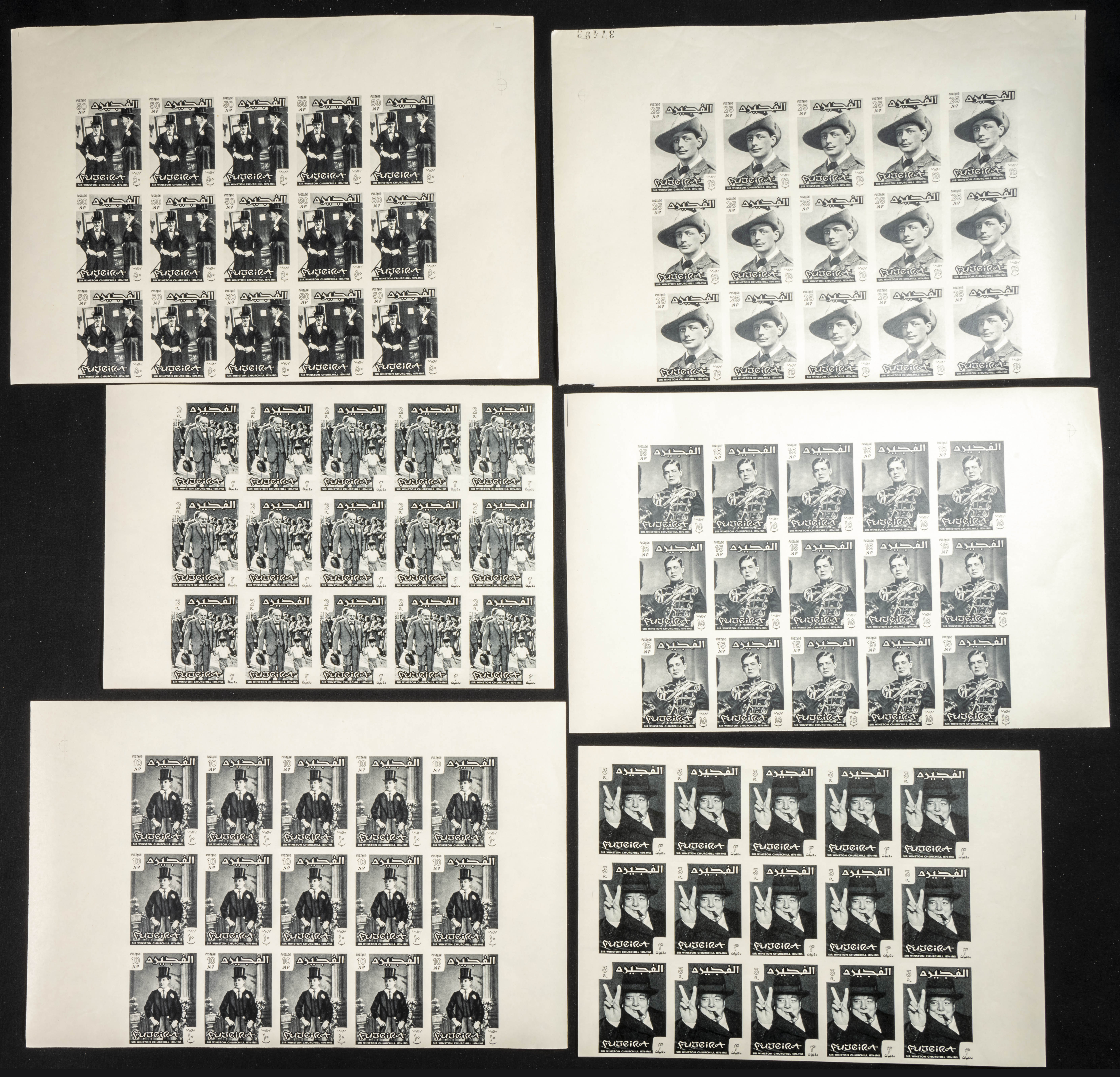 ★★1966. Sir Winston Churchill. Group of progressive plate proofs of the set. (Michel: 60/67). TO EXAM.
