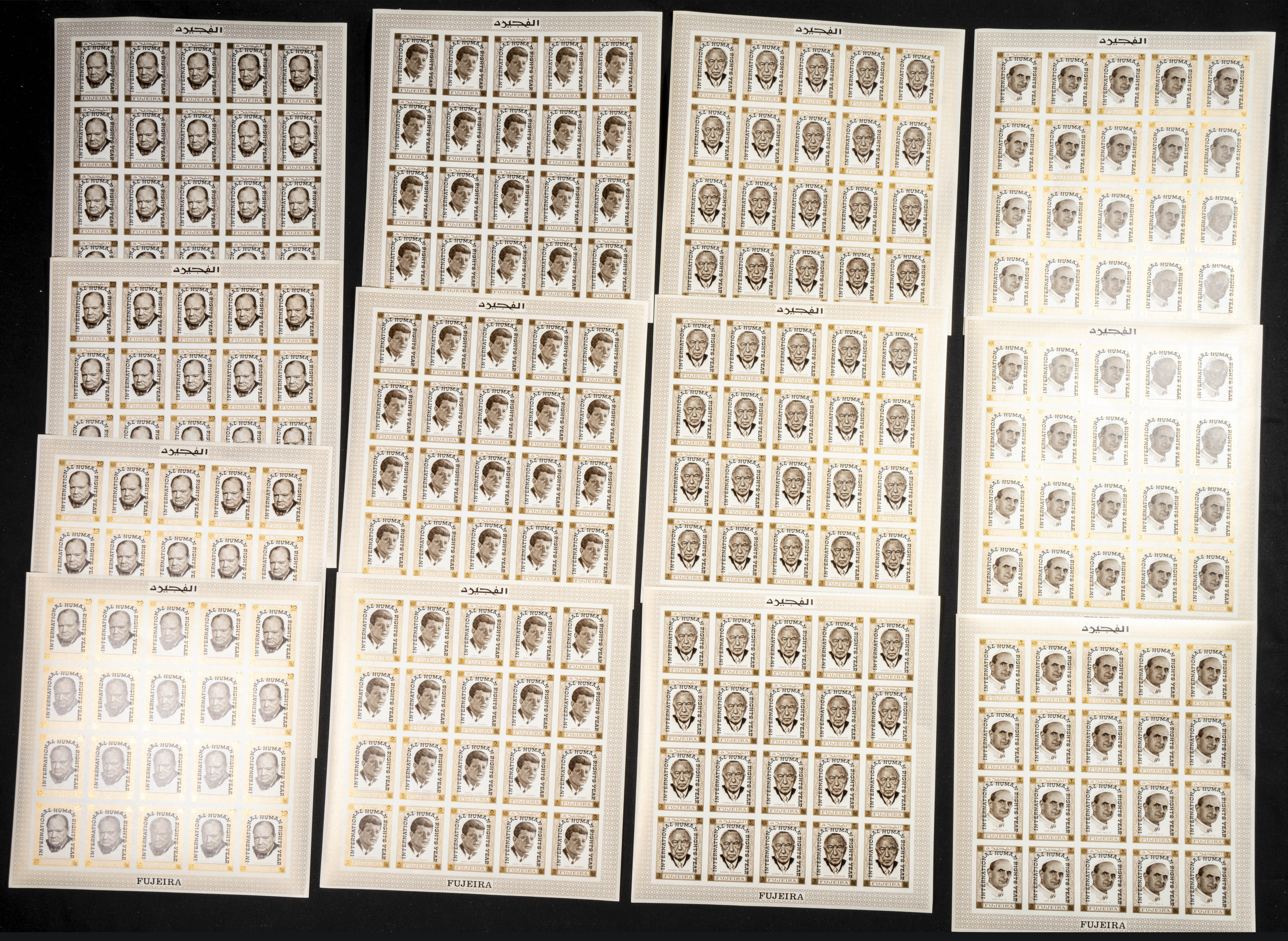 ★★1969. Human rights years 7v, overprints. Group of IMPERFORATED sets. (Michel: A374/80B). TO EXAM.